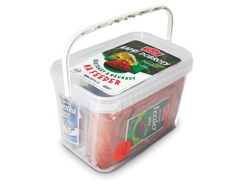 Tento kbelík a jeho obsah ocení především všichni rybáři, kteří chodí lovit ryby na feeder nebo method feeder. Uvnitř naleznete osvědčené nástrahy a návnady z produkce firem Chytil a FeederBaits.