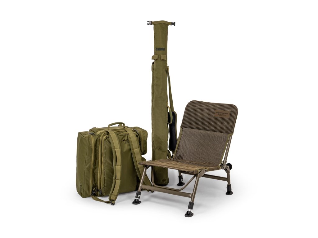 Součástí sady je křeslo vyrobené z našeho materiálu Supa Lite Stretch, kompaktní batoh Roving Ruckbag a štíhlý toulec na dva pruty 2-Rod Roving Quiver. Křeslo a batoh lze díky naší zakázkové konstrukci, která je spojuje dohromady, nosit jako jeden celek. Je to dokonalý způsob, jak zůstat mobilní, aniž byste museli obětovat kvalitu nebo funkčnost.
