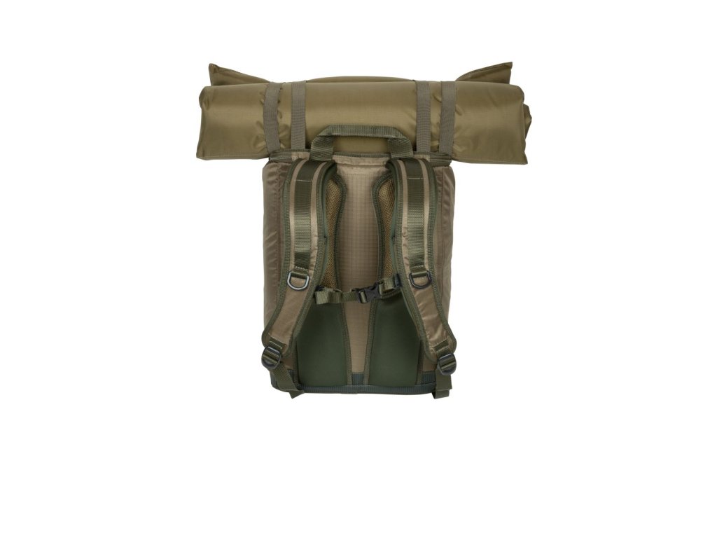 V horní části se nacházejí elastické popruhy, které jsou vhodné pro přepravu podložky, bundy nebo i menšího spacího pytle.