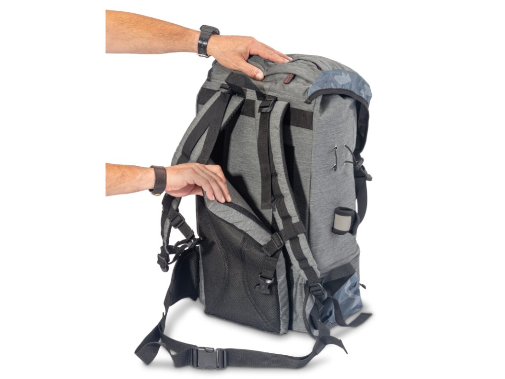 Perfektní batoh pro rybáře, kteří tráví dlouhé hodiny u vody. Hlavní komora nabízí velký prostor pro uložení vybavení a zadní část je vybavena polstrováním pro maximální pohodlí. Zadní část lze navíc odejmout a použít jako sedák. Batoh je stabilizován ultra lehkým hliníkovým rámem, obsahuje chladicí přihrádku a na bocích úchyty pro pruty nebo podběráky. Ideální volba i pro rybáře, kteří se pohybují na kole.
