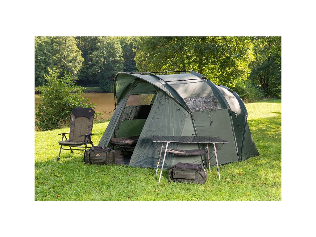 Technologický pokrok a požadavky kaprářů nám každoročně představují nové výzvy. V kombinaci s naším produktově technickým know-how se nám podařilo vytěžit „to nejlepší“ pro kapraře. S Vipex Maxx Dome 180 spojili naši vývojáři produktů všechny hodnoty zkušeností a vytvořili to nejlepší pro kapraře. Počínaje neuvěřitelně dobrou stabilitou, kterou zaručují další boční podpěry stanu, nebo promyšleným magnetickým systémem (magnetická clona), který uzavírá vstupní dveře, až po prostornost, velká uzamykatelná okna nebo volitelně namontovatelný Drip Stop, který během chladnějších měsíců v roku odkapává a zabraňuje kondenzaci. Všestranný bivak má dlouhý baldachýn. Magnetická opona vytváří malou předsíň, pod kterou můžete sedět v deštivém počasí. Kvalitní izolaci zajišťuje také vysoce kvalitní „Heavy Duty Groundsheet“, který zabraňuje nežádoucímu pronikání hmyzu všitými do oken bivaku.