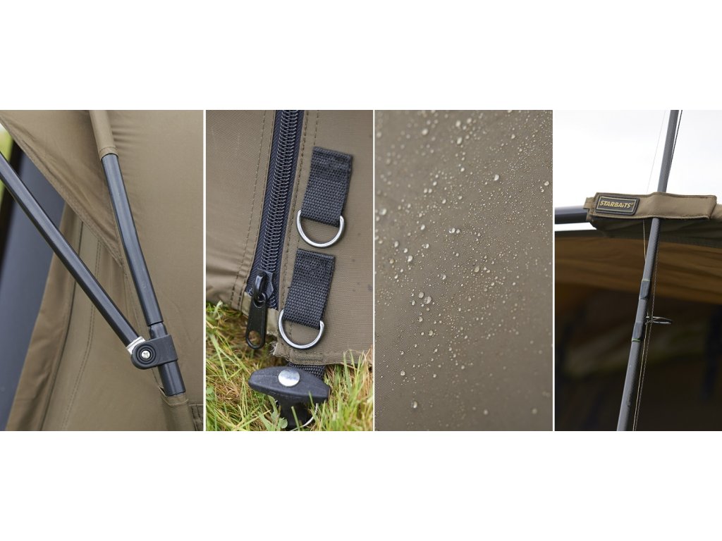 - Přední a zadní velká moskytiérová okna se zavíráním proti dešti na zip a jištěním suchým zipem