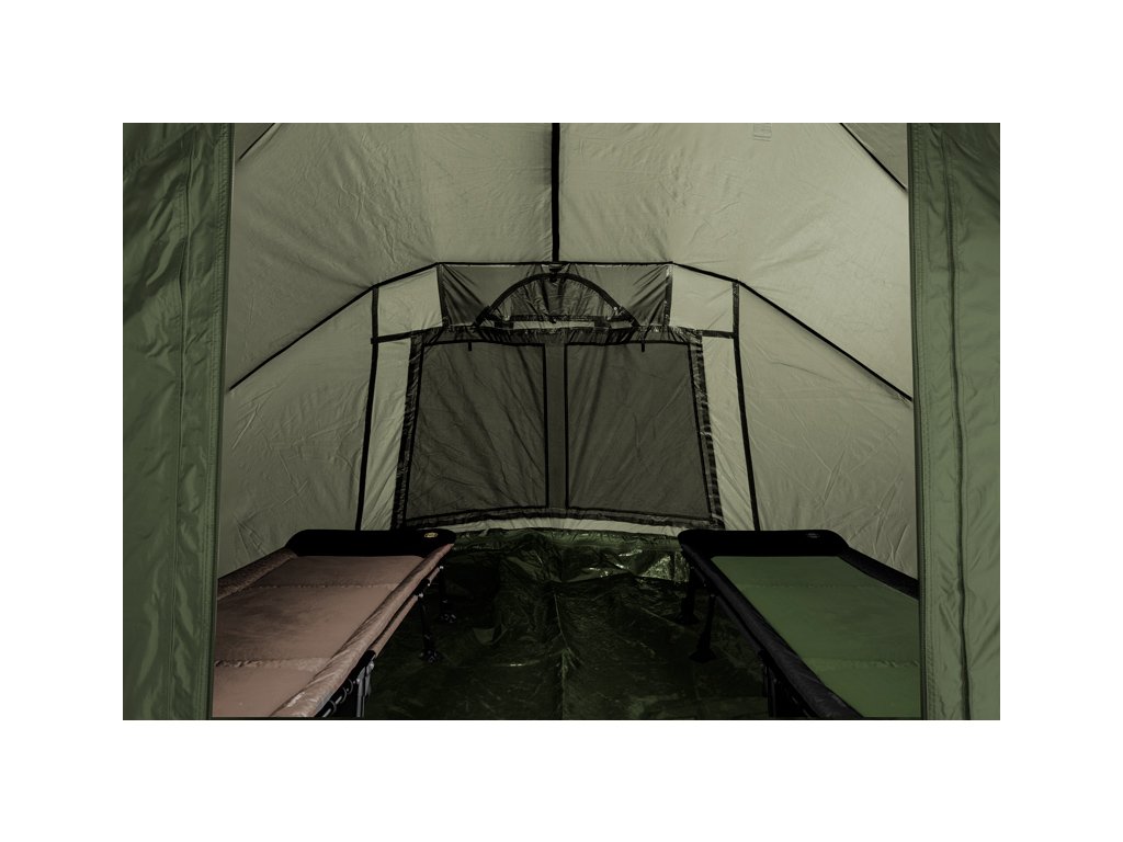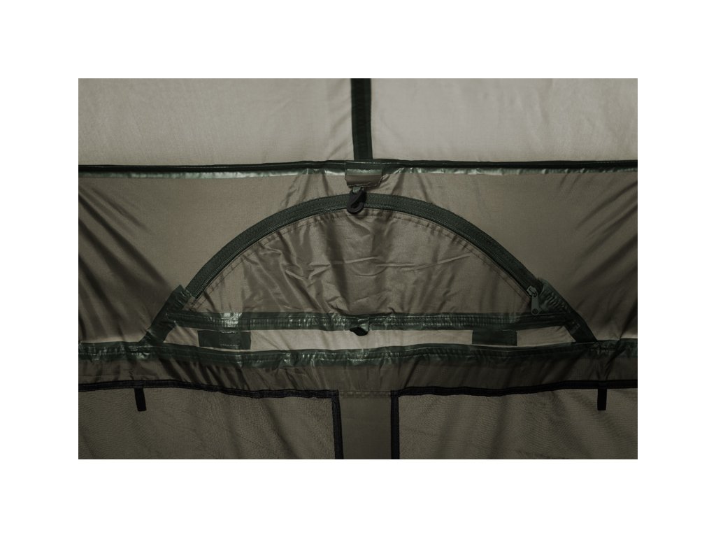 Nová vylepšená generace krále mezi velkými bivaky. YURTA NEO je charakteristický svým velkorysým prostorem, poskytujícím dokonalé útočiště během dlouhých pobytů u vody. Do tohoto bivaku bez problémů umístíte 3 lehátka, přičemž stále v něm zůstane dostatek prostoru na pohodlné fungování u vody. Základ bivaku tvoří mohutná trojžebrová konstrukce s vrchními vyztužujícími rozpěrami. Kromě toho však disponuje dvěma rozpěrami po bocích, díky kterým nabývá bivak ještě lepší stabilitu. V kombinaci s kvalitní látkou a kompletně podlepenými švy zvládne tento bivak jakékoli povětrnostní podmínky. V přední části se nachází velký kšilt s délkou nad vstupem až 70cm! Díky kšiltu vám nenaprší na případnou obuv před bivakem a během silné bouřky zamezí kapkám deště, dostat se na moskytiéru dveří. Kšilt také disponuje dvěma úchyty na pruty. Uvnitř jsou na stropě bivaku navíc umístěny 2 háčky, na které je možné zavěsit například lampu. V přední části se kromě dveří nacházejí také dvě okna. Obě jsou moskytiérová s možností transparentních fóliových oken, nebo možností plné textilie. Fóliová okna jsou součástí balení, a tak nemusíte dokupovat nic navíc! U modelu YURTA NEO jsme však mysleli i na lepší odvětrání bivaku a aplikovali jsme něj náš sofistikovaný systém CLIMA CONTROL. Tento systém je tvořen dvěma větráky na protilehlých stranách (nad vstupními dveřmi a nad zadním oknem). Díky tomuto důmyslnému systému lze zajistit cirkulaci vzduchu ve vnitřním prostoru bivaku v době, kdy není možné větrat pomocí velkých oken. Určitě ho oceníte zejména v noci, kdy výrazně napomáhá snižovat kondenzaci na vnitřních stěnách. Celý systém je navíc jednoduše ovladatelný zevnitř bivaku. Bonusem navíc oproti předchozí generaci je zipovatelná podlaha. Po celém vnitřním obvodu je několik cm nad zemí všitý zip, díky kterému je zamezeno pronikání hmyzu, hlodavců či vody do bivaku. Pro snadnější stavění bivaku má podlaha označený vstup. K bivaku je možné dokoupit přehoz, který je ze stejného materiálu jako bivak. Jeho osazením na bivak získáte pod kšiltem dalších uzavřených cca 40cm před bivakem. Přehoz navíc zlepší tepelně izolační vlastnosti bivaku. Bivak Delphin YURTA NEO nabízí maximální možný komfort a uspokojí i ty nejnáročnější rybáře! Technické parametry: Vnějš. rozměr: 380x310x180cm Výška bivaku: 180cm Délka kšiltu: 70cm Transp. rozměry bivaku:130x35x35cm Hmotnost bivaku: 14kg Transp. rozměry přehozu:60x20x20cm Hmotnost přehozu: 4,5kgDoplňkové parametry