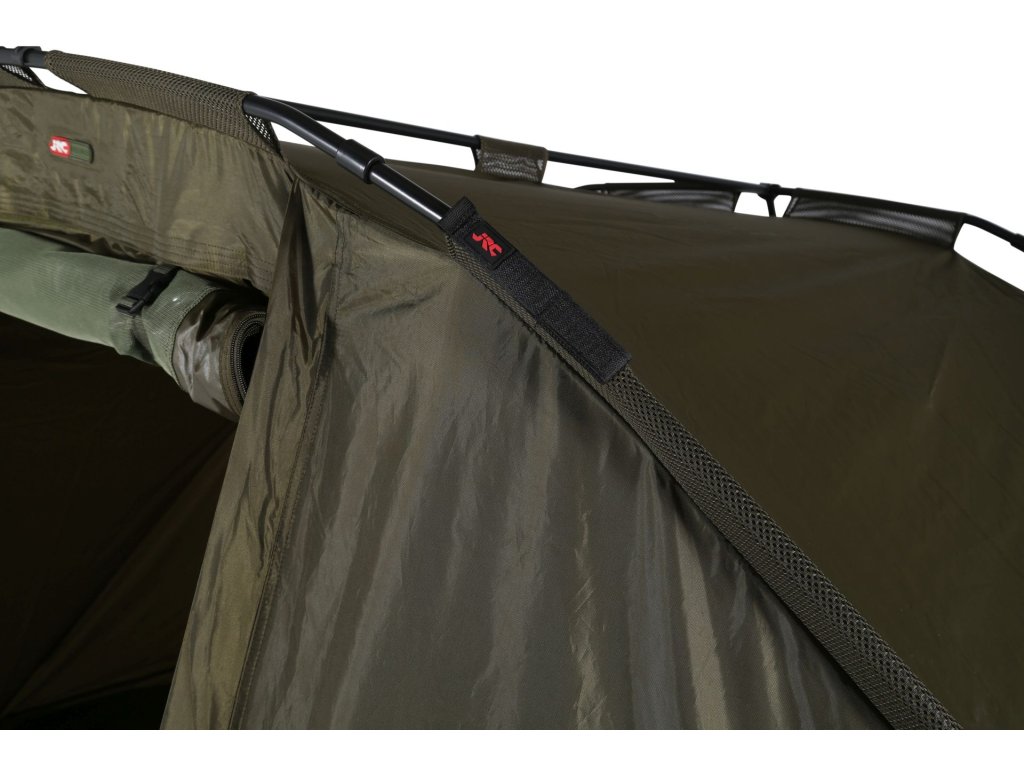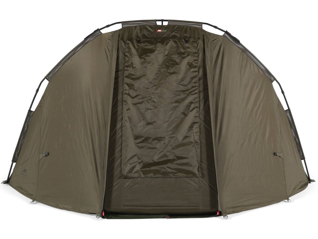 - přední strana bivaku nabízí tři možnosti nastavení, moskytiéra, plný panel a slidové okno