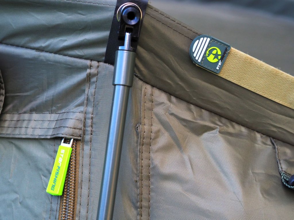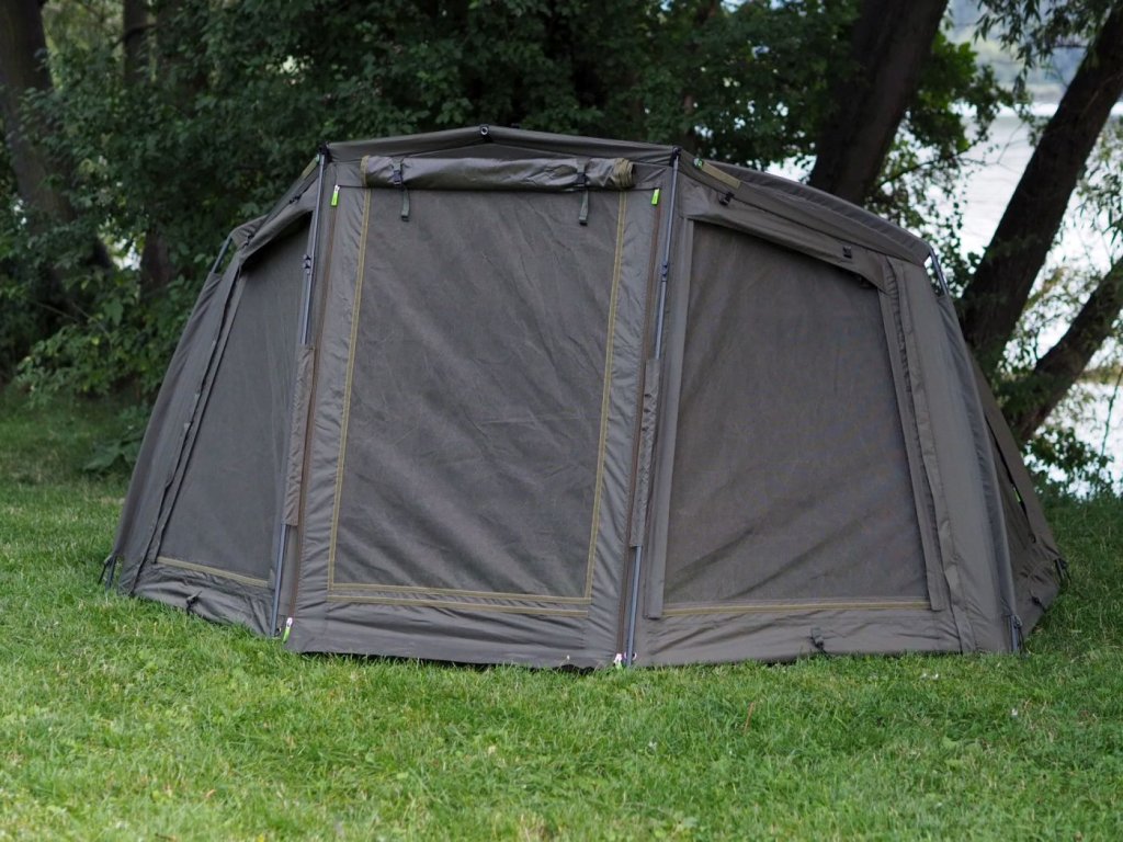 Je vybaven celou řadou vychytávek jako podlaha na zip, háčky na pověšení příposlechu, zesílené stěny tyčí s anti rotačními tyčemi se zámky ve tvaru D, ale hlavní výhodou je vějířová konstrukce s třemi předními trny, díky kterému lze bivak jednoduše a snadno postavit.