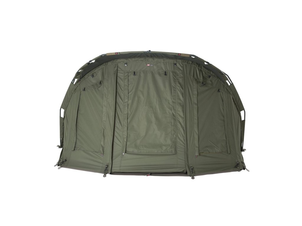 Zip na předním panelu může být upraven tak, aby vznikla tři různá nastavení dveří. Velké přední a zadní větrací otvory spolu s dveřmi a okenními panely dělají tento bivak velmi přizpůsobivý různým povětrnostním podmínkám, kterým rybáři čelí.