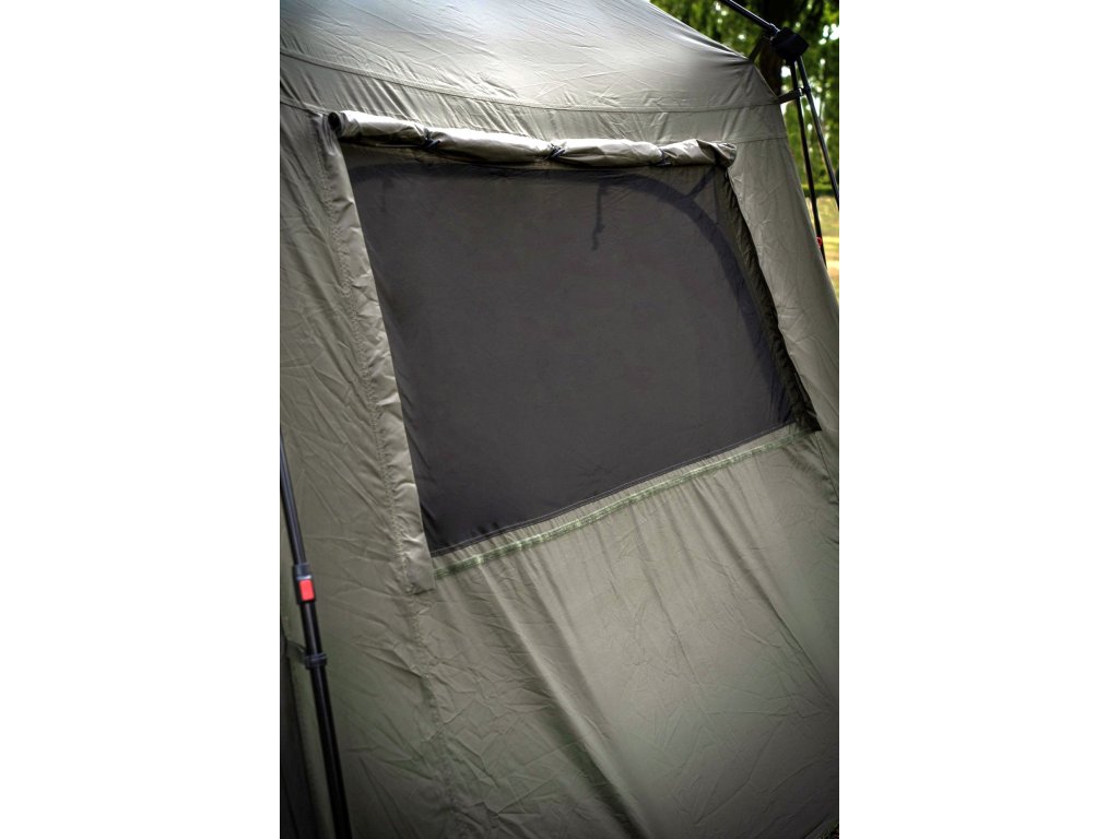 Přístřešek JRC Cocoon Basecamp se dá snadno postavit jednou osobou a je vyroben z lehkého plně voděodolného materiálu. Čtyři rohová vysoce viditelná stabilizační lana jsou dodávána s pevnými kolíky. Dva síťovinové mozzy panely nabízí chráněnou ventilaci.