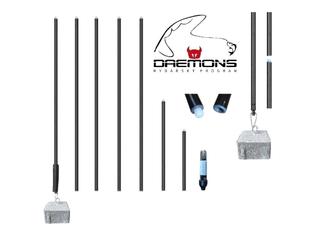 Stavitelná sklopná tyčová bójka DAEMONS BO-SK05-R1 pro označení lovného místa se zcela novou špičkovou svítící LED elektronikou, novými nerezavějícími spoji jednotlivých dílů a ukotvením.