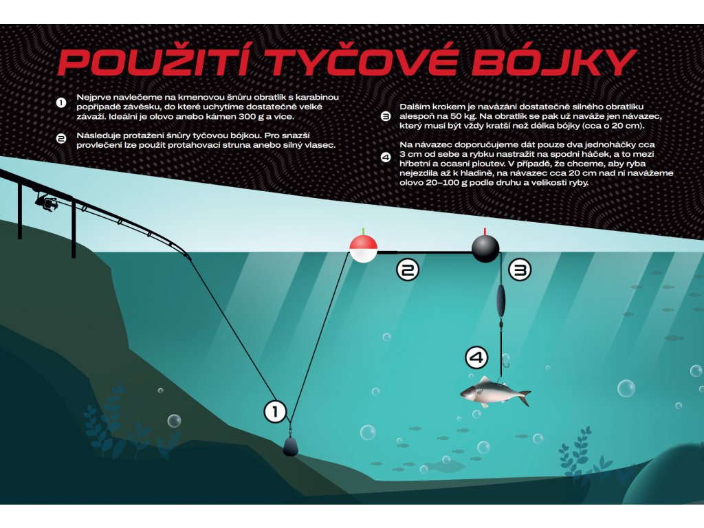 Teleskopická sumcová bójka DK FISHING navazuje na tradiční lovnou metodu sumce. Výhodou je excentrické spojení obou plováků, které zabraňuje otáčení bójky kolem své osy a tím i zamotání vlasce. Zároveň obsahuje otvory pro dvě chemická světla pro noční lov. V základní verzi obsahuje dvě reflexní tyčinky, které můžeme umístit do otvorů v případě denního lovu. Celkovou délku bójky lze nastavit díky plastovému excentrickému zámku v rozmezí od 90 do 150 cm dle potřeby. Nejuniverzálnější sumcová bójka na českém trhu s komfortní přepravní délkou díky teleskopickému výsuvu!