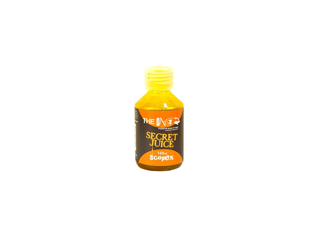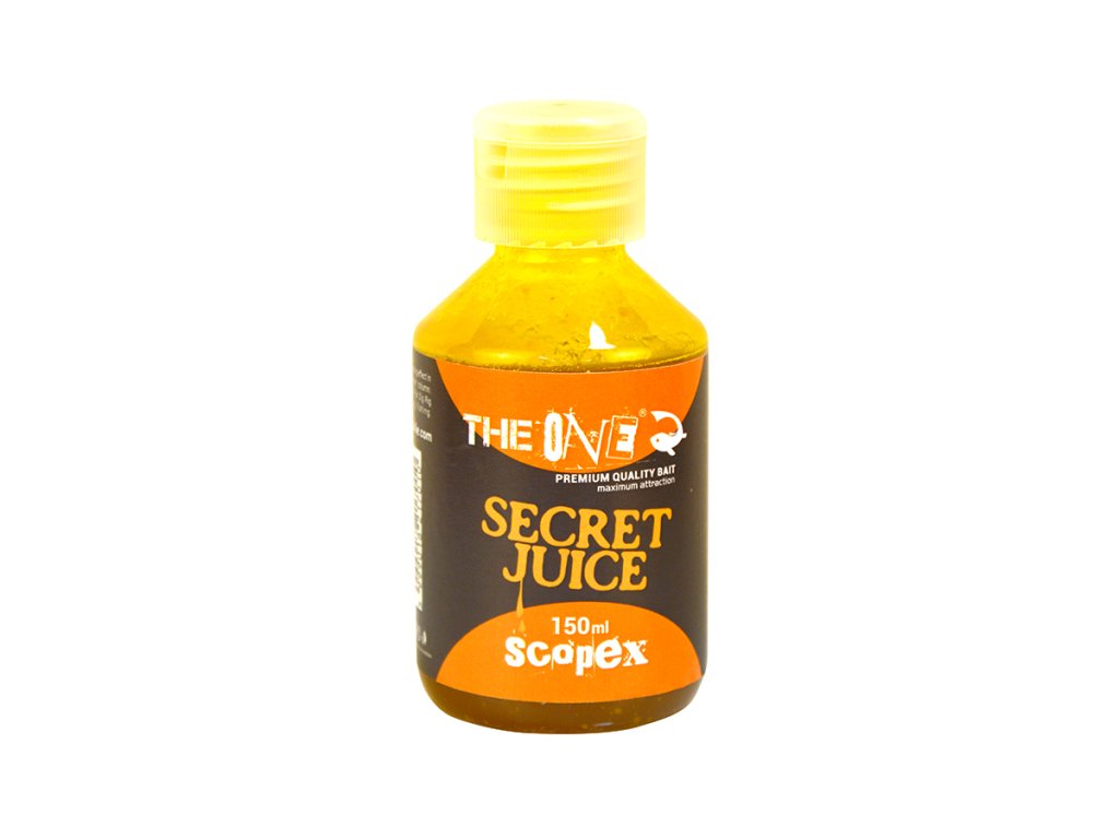 The One Secret Juice Scopex s sladkou základnou a příchutí Scopex dobře funguje i v chladné vodě, prakticky po celý rok je dobře použitelný, dokonce i při lovu amura.