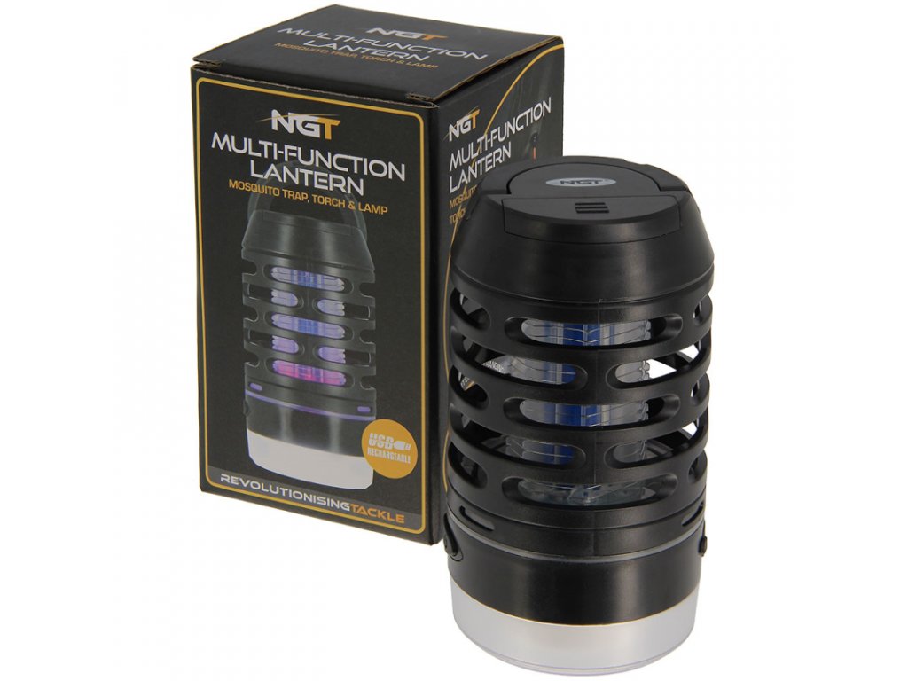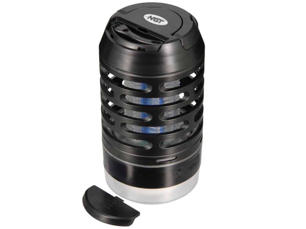 Multifunkční, kompaktní, dobíjecí lapač hmyzu a svítidlo od britské značky NGT je perfektním doplňkem pro rybaření, kempování nebo táboření. Bug Zapper & Light System je účinný lapač hmyzu a zároveň praktické LED svítidlo do bivaku, stanu nebo rovnou na lovné místo, kde by měl také značně eliminovat dotěrný hmyz. Lapač funguje na principu ultrafialových paprsků, které přilákají obtížný hmyz do bezprostřední blízkosti lapače, kde následně dojde k usmrcení hmyzu neškodným elektrickým výbojem.