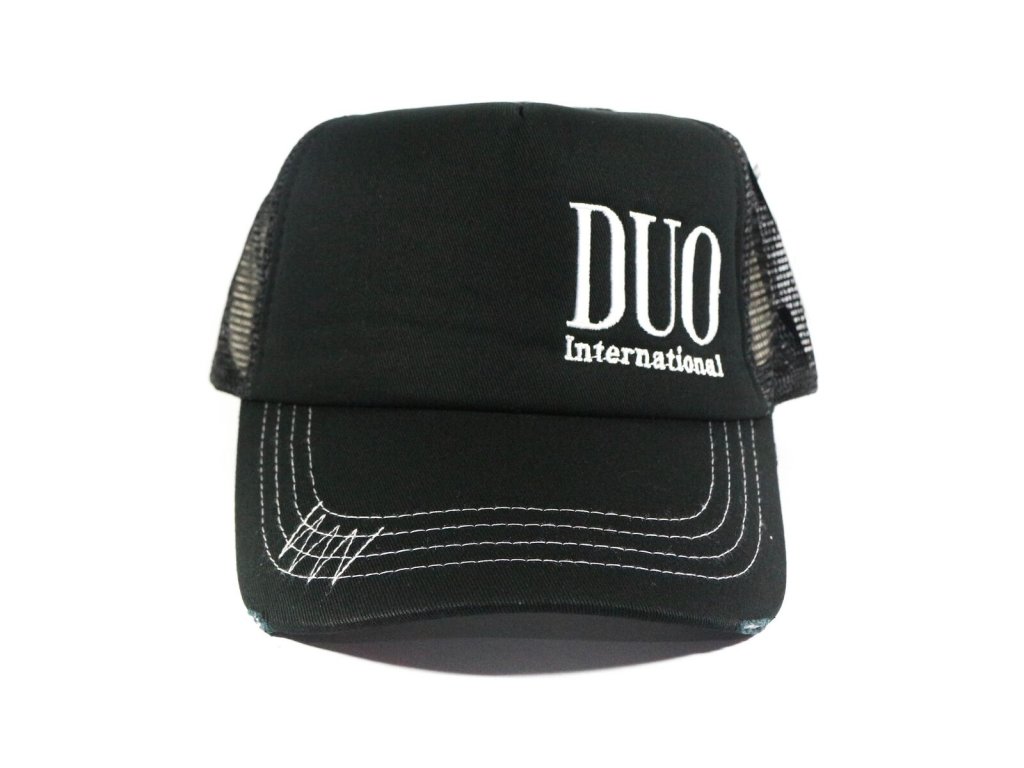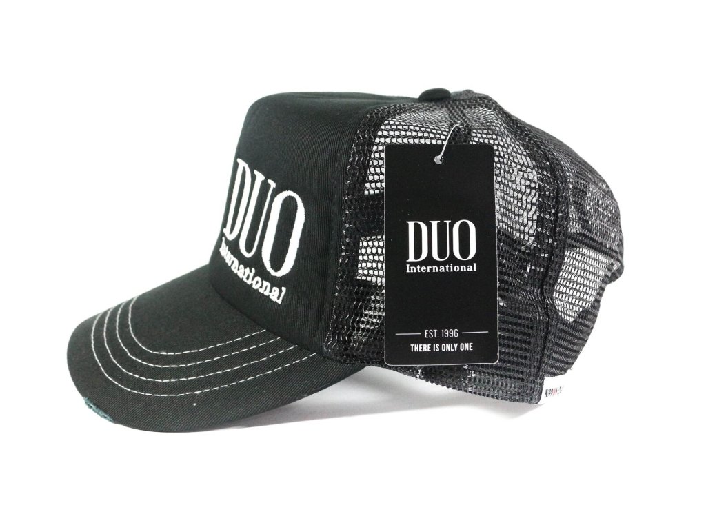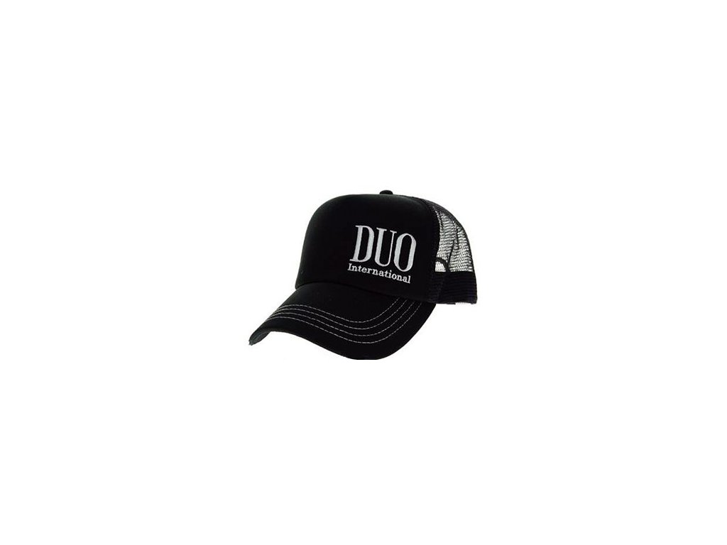 Kšiltovka je vyvedená v matné černé barvě s bílým logem DUO a bílým prošíváním. Mesh (síťovina) provedení v zadní části propouští přebytečné teplo a tím zabraňuje pocení. Nastavitelná velikost klasickou přezkou, díky které kšiltovka spolehlivě padne na každou hlavu.
