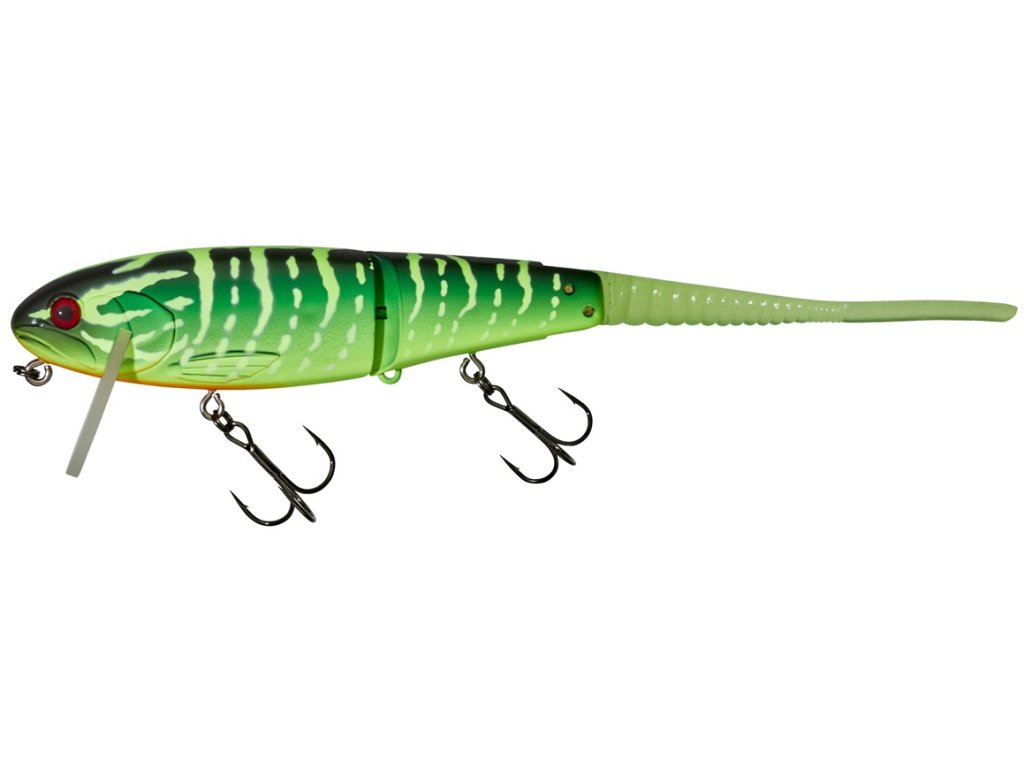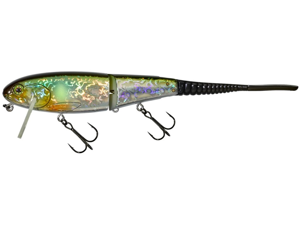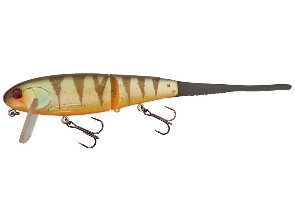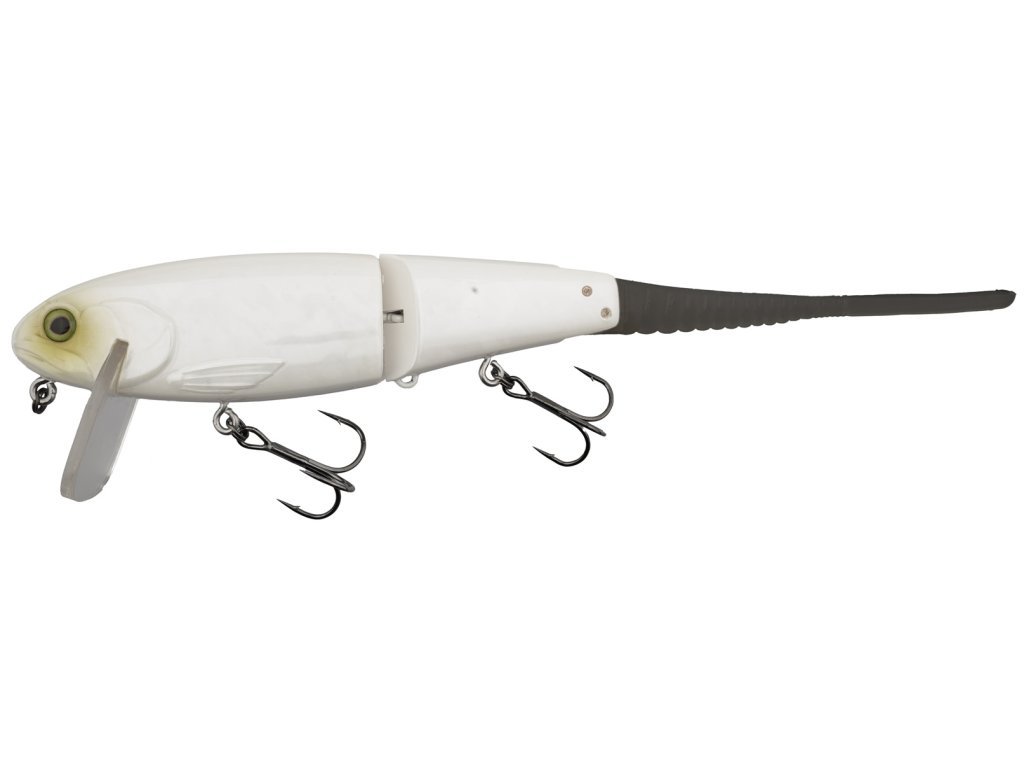 Flat Bone Clicker je kloubový wobler typu „Jointed Big Bait“, který vyniká výrazným rolovacím pohybem i při pomalém vedení. Díky kloubovému tělu, lopatce a gumovému ocasu lze nástrahu vést i metodou „Walking the Dog“ s minimálním vychylováním do stran. To je ideální při lovu v těsné blízkosti překážek nebo za zhoršených podmínek, kdy jsou dravci opatrní a schovaní. Při plynulém vedení wobler generuje silný pohyb, který spolehlivě upoutá pozornost predátorů i z větší vzdálenosti. Nástraha je vhodná zejména pro lov štik, sumců a velkých candátů. Některé barvy obsahují UV body pro ještě větší dráždivost. Délka 220 mm, hmotnost 48 g, potápivost 0–0,3 m+, plovoucí nástraha.