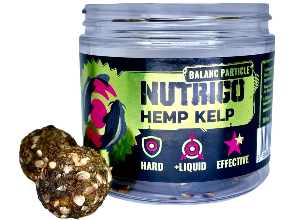 Dokonalá konopná nástraha kombinovaná s mořskou řasou a plněná lahodnou Algaprime DHA LS suspenzí, která krásně voní po mořských rybách, přestože je rostlinného původu. Doporučujeme použít v kombinaci s návnadou NUTRIGO FEED-EX CORN HONEY, TIGER NUTS nebo partiklovým podkladem z konopí. Možná absolutní vrchol našeho výrobního umění a souhrn našich letitých zkušenností v jedné nástraze. Nutrigo Balanc je vyrobeno vůbec z toho nejlepšího, co kdy bylo pro lov kaprů objeveno a doslova prošpikováno těmi nejlepšími přírodními nektary, které intenzivně unikají z nástrahy v závislosti na množství propíchnutí povrchu. A co víc? Nástraha je neutrálně vyvážená - nadlehčená, což mnohonásobně zvyšuje šance na záběr a úspěšné zaseknutí. Nutrigo Balanc je ZDE! Nutrigo Balanc propíchněte jehlou a klasicky navlékněte na vlas pod háček (doba účinku je až 24 hodin). Pro rychlejší uvolňování, krátkodobé vycházky nebo zimní rybaření, můžete nástrahu propíchnout vícekrát (doba účinku je až 12 hodin). Celoroční použití! Ruční výroba. Patentově chráněno. Uvedený průměr je orientační. Na povrchu nástrahy se může vyskytovat tekutina. Nástraha může měnit barvu. Obsah balení: 14 kusů nástrahDoplňkové parametry