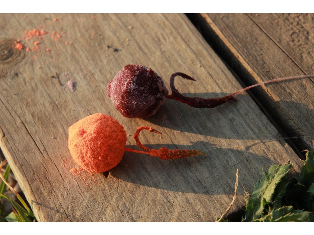 Pro maximální účinnost namočte nástrahu ve vodě či tekutém dipu, nechte okapat a následně obalte v práškovém dipu a nechte zavadnout cca 2 minuty. Tento postup je možné opakovat vícekrát pro extra dlouhou atraktivitu.