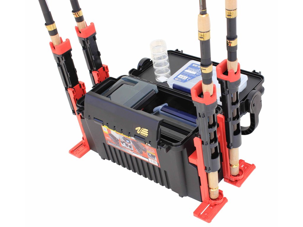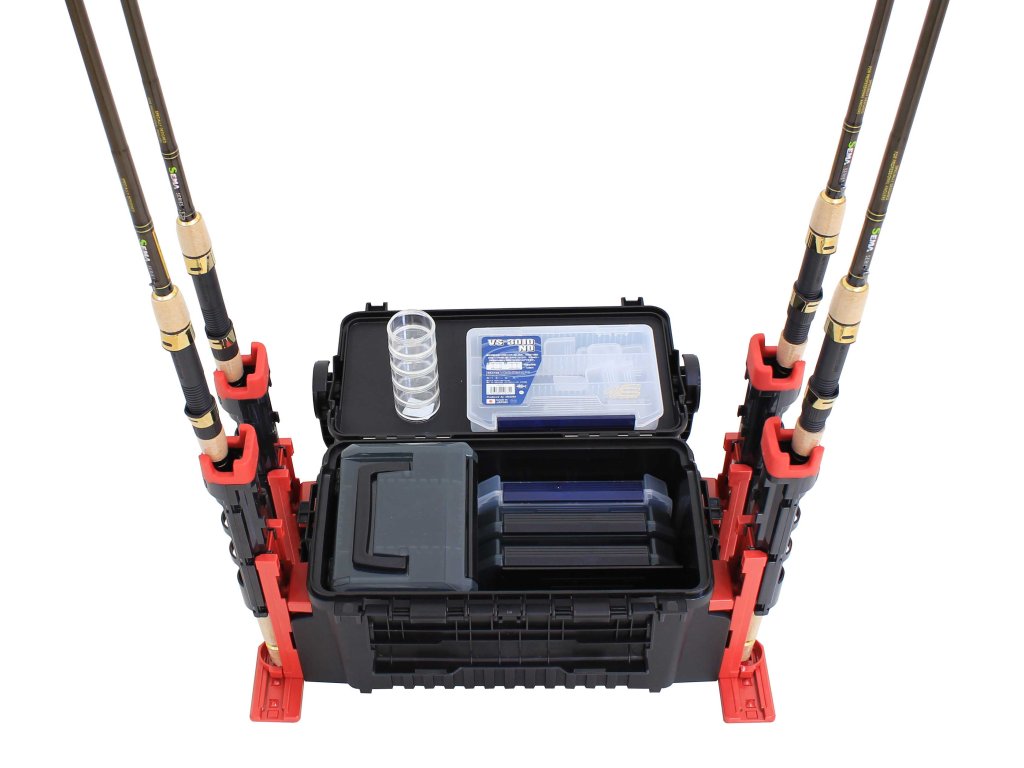Rod Stand BM-230N je velmi užitečným doplňkem pro box Versus VS707000 Black, je pevně připojen ke kufru, je nastavitelný což umožňuje dát do stojanu téměř jakýkoliv prut. Horní část stojanu je pogumovaný, což eliminuje jakékoliv poškození prutu a navijáku