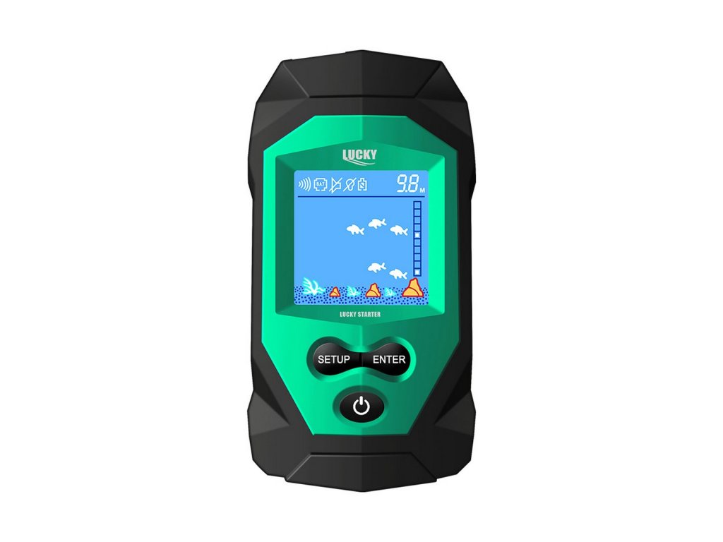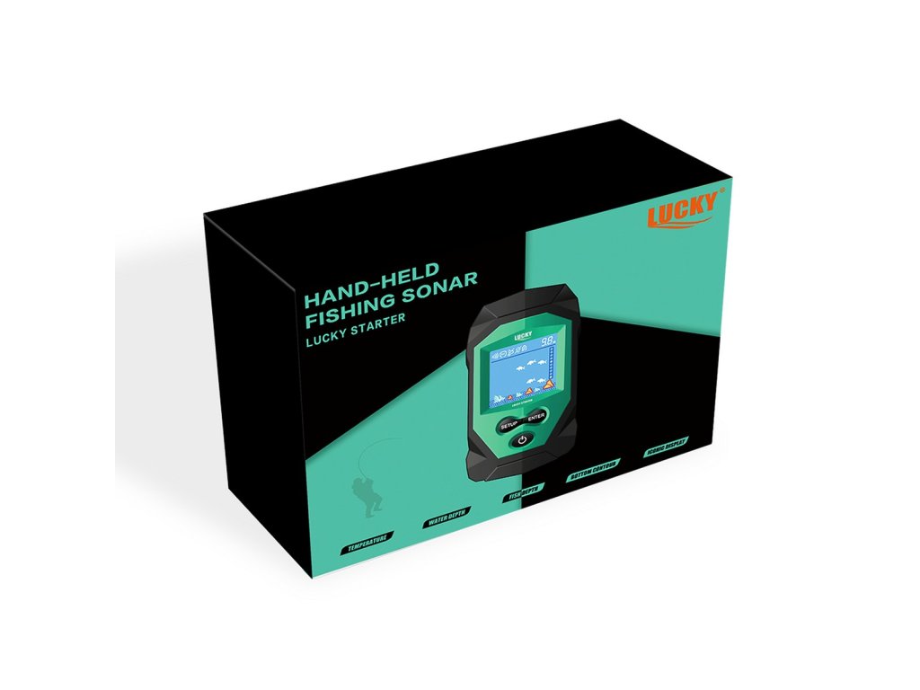 Ruční kabelový sonar na ryby Lucky Starter – Nezávisle od zkušeností patří k oblíbeným pomůckám i sonary kompaktních rozměrů, s kterými můžeme lehce zmapovat místa nacházející se okolo lovného místa, jako i samotnou hloubku vody, podmínky na dně, místa s výskytem ryb už nebudou tajemstvím. Starter je mezi Lucky radary kompaktní ruční variantou, který kromě tradičních doplňků obsahuje i sonar s kabelem. Ruční kabelový radar na ryby Lucky Starter Nezávisle od zkušeností patří k oblíbeným pomůckám i radary kompaktních rozměrů, s kterými můžeme lehce zmapovat místa pod hladinou, jako i samotnou hloubku vody, podmínky na dně, místa s výskytem ryb už nebudou tajemstvím. Starter je mezi Lucky sonary kompaktní ruční variantou, která kromě tradičních doplňků obsahuje i kabelový sonar.Funkce sonaru je založena na šíření zvukových vln. Rybí sonar pomocí sonaru určí kontury dna, jeho strukturu, jako i hloubku. Sonar ze sebe vydává zvukové vlny, přičemž z času jejich odrážení určí vzdálenost od předmětu. Na základě vracejícího se signálu následuje určení situace, rozměrů a složení. Hlavní funkce sonaru: