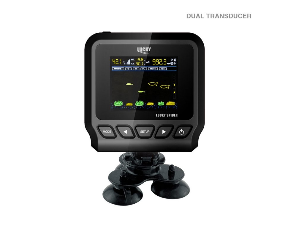 Kabelový sonar na ryby Lucky Spider – Nezávisle od zkušeností patří k oblíbeným pomůckám pro rybáře. Sonar má kompaktní rozměry, s kterými lehce můžeme zmapovat místa nacházející se kolem lovného místa, jako i samotnou hloubku vody, podmínky na dně, místa výskytu ryb už nebudou tajemstvím. Spider je mezi Lucky radary kompaktní varianta, která kromě tradičních doplňků obsahuje i sonar s kabelem. Kabelový radar na ryby Lucky Starter s držákem a barevným displejem – možnost použití na člunu i kajaku Nezávisle od zkušeností patří k oblíbeným pomůckám pro rybáře. Sonar má kompaktní rozměry, s kterými lehce můžeme zmapovat místa nacházející se kolem lovného místa, jako i samotnou hloubku vody, podmínky na dně, místa výskytu ryb už nebudou tajemstvím. Spider je mezi Lucky radary verze opatřena kompaktním držákem, který obsahuje kromě základných doplňků i sonar s kabelem. Funkce sonaru je založena na šíření zvukových vln. Rybí sonar pomocí sonaru určí kontury dna, jeho strukturu, jako i hloubku. Sonar ze sebe vydává zvukové vlny, přičemž z času jejich odrážení určí vzdálenost od předmětu. Na základě vracejícího se signálu následuje určení situace, rozměrů a složení. Hlavní funkce sonaru:Hledání ryb a měření hloubky
