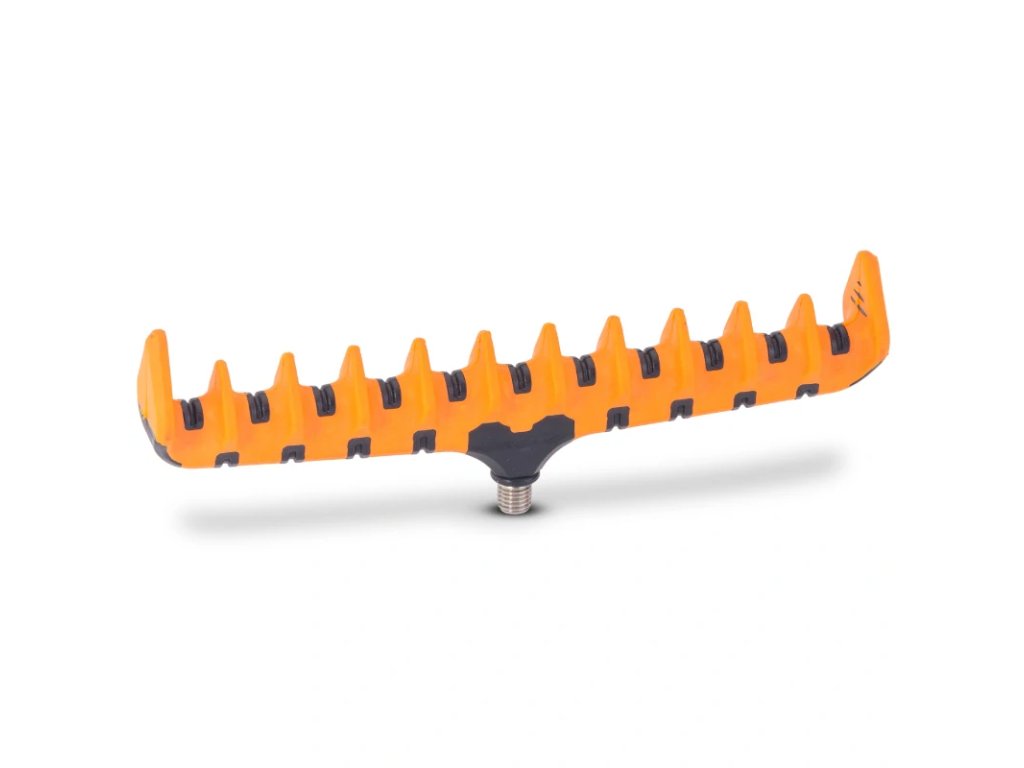 Rod Protector Bar umožňuje odložit prut do různých pozic a zároveň upravit napnutí špičky podle potřeby. Díky drážkám lze provádět jemné korekce polohy špičky a doladit tak nastavení při čekání na záběr. Vysoké bočnice zvyšují bezpečnost a pomáhají zabránit tomu, aby byl prut při razantním záběru stržen do vody.