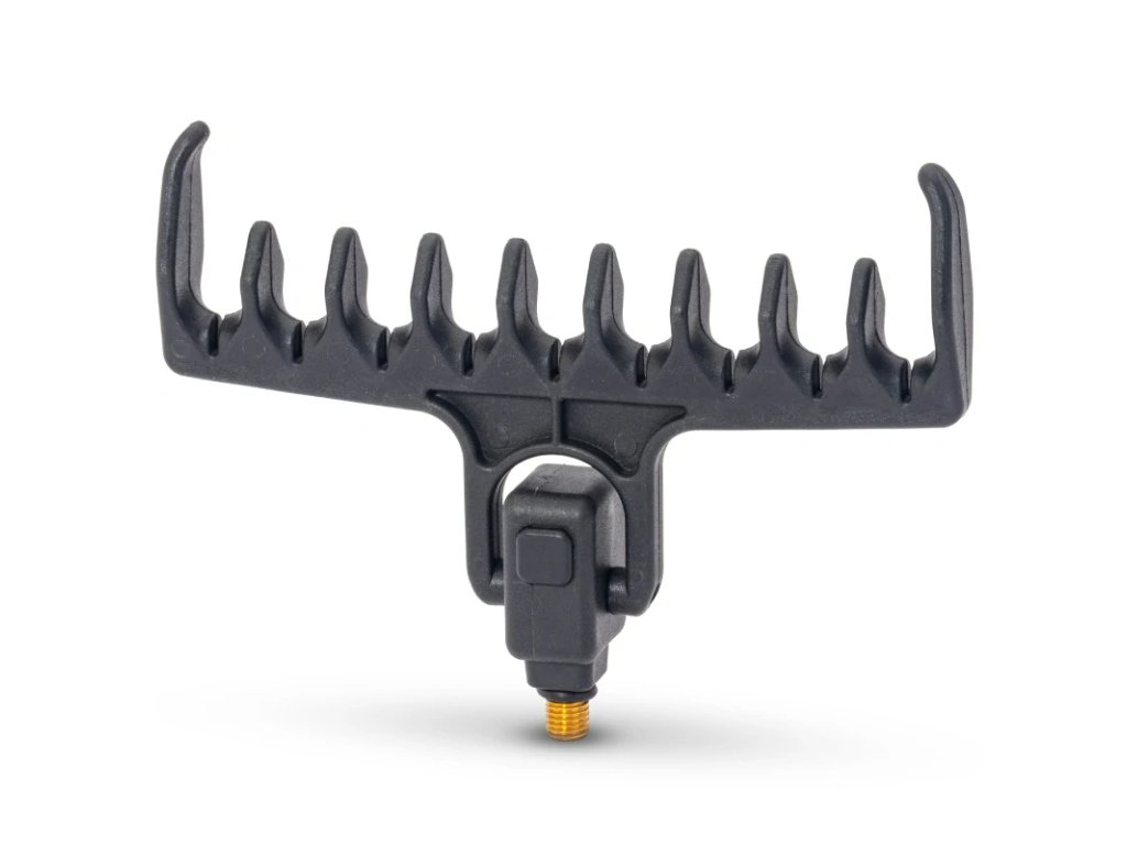 Angle Adjust Rod Rest je high-end rohatinka, u které lze jediným stiskem tlačítka nastavit přesný úhel uložení prutu do požadované polohy. Díky celkem 9 nastavitelným úhlům je snadné přizpůsobit vedení vlasce i pozici prutu konkrétním podmínkám u vody a udržet prut stabilně uložený.