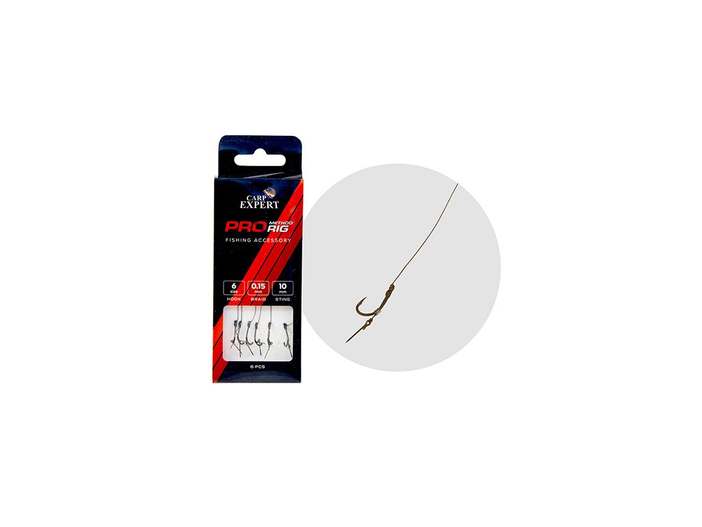 Pro Method Feeder Hair Rig je vybaven kvalitními, pevnými kaprovými háčky s protihrotem, které vydrží i v náročném terénu. Spárovali jsme je s pletenými vlasci vhodné tloušťky, jakož i nástrahovými trny potřebné velikosti, aby se rybář už nemusel zabývat vázáním háčku na břehu.