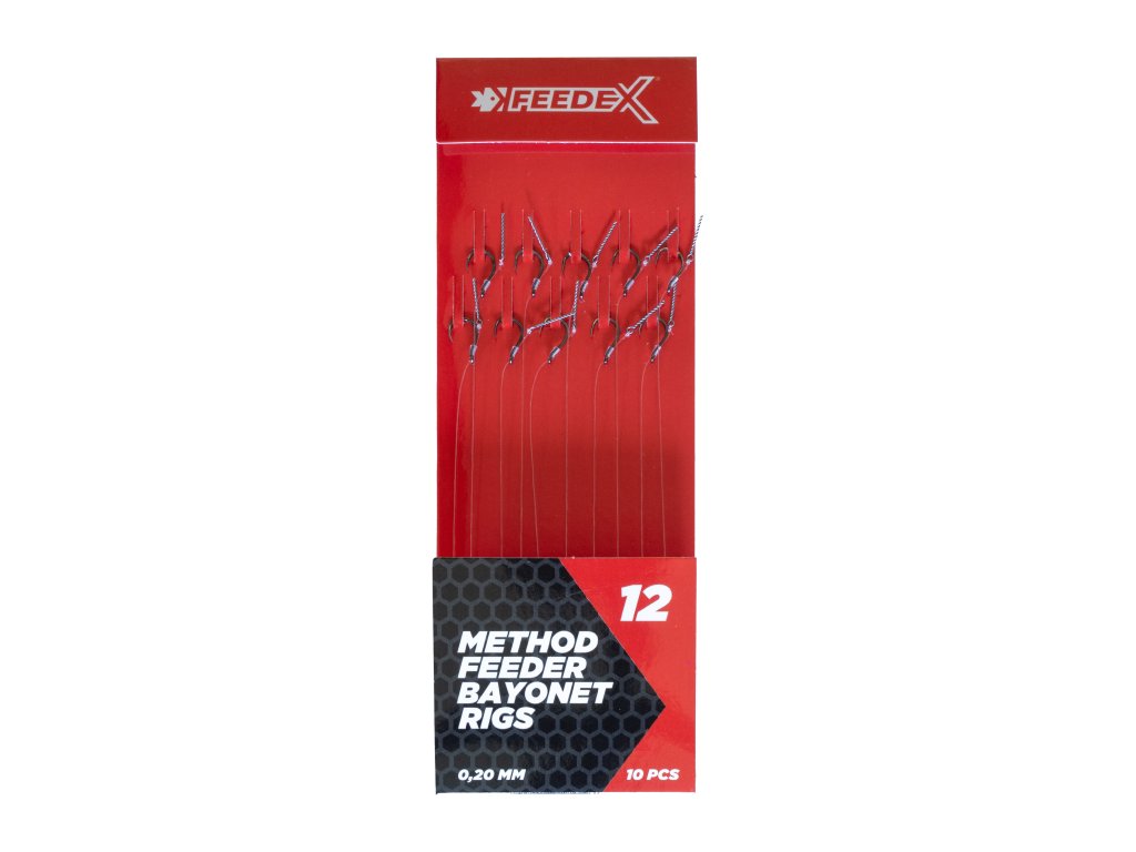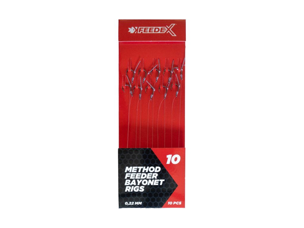 Method feeder návazce se zapichovacím bayonetem jsou určené pro malé pop-up, wafters, feeder boilie či plovoucí i potápivou kukuřici. Jsou osazené profesionálním háčkem Spec-X, kteří používají mnozí závodníci, a fluorocarbonem o délce 10 cm.Doplňkové parametry