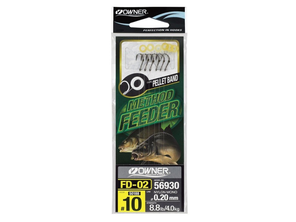Návazec FD02 od firmy Owner je dodáván se silikonovým očkem (gumičkou), která slouží k uchycení nástrah. Například peletky. Návazce jsou připraveny k okamžitému použití a jsou k dispozici v různých velikostech háčků. ~Síla vlasce a velikost háčků OWNER jsou dokonale sladěné, což vám dává klíčovou výhodu.~Typ háčku: 50188~Nosnost vlasce: 13,6lb/6,2kg~Délka návazce: 10 cm.~Obsah: 6 kusůDoplňkové parametry