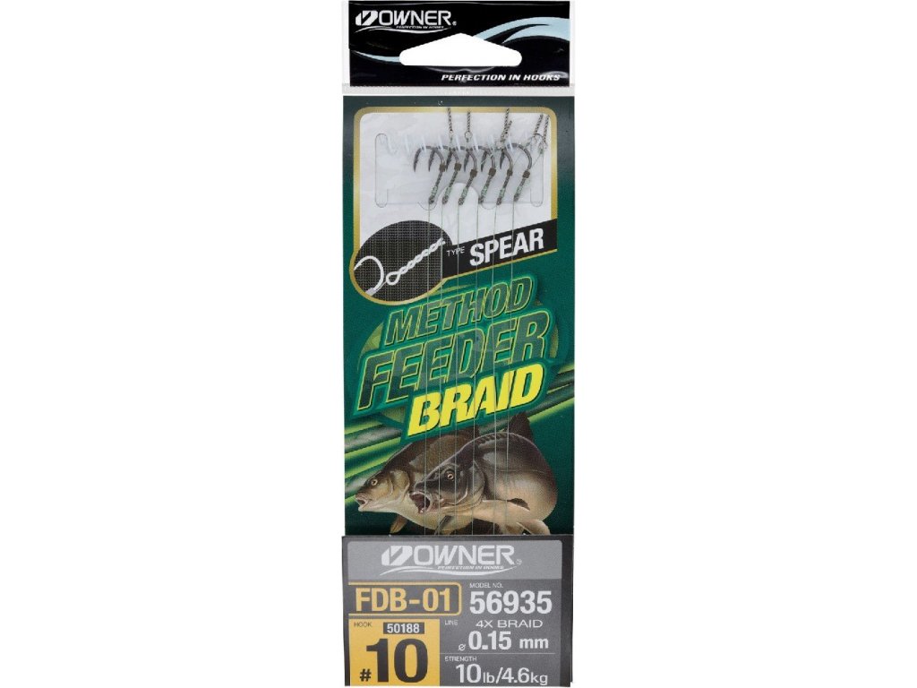 Velice oblíbeny feedrový návazec s trnem, který slouží k napíchnutí nebo navrtání nástrahy. Kombinace osvědčených háčků OWNER a splétané šňůry Kizuna je účinnou prezentací nástrahy nejen pro techniku Method Feeder.~Tyto návazce se používají vždy tam, kde je třeba počítat s překážkami jako jsou rostliny, lekníny apod.~Typ háčku: 50188~Nosnost šňůry: 10lb/4,6kg~Délka návazce: 10cm~Obsah: 6 kusůDoplňkové parametry