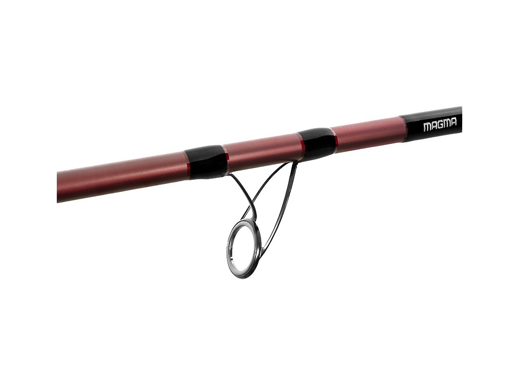 Dokonale vyladěná, v pořadí už čtvrtá generace prutů MAGMA, které dnes již jednoznačně patří mezi legendy na feederové scéně. Svědčí o tom desetitisíce prodaných kusů a dovolíme si tvrdit miliony zdolaných ryb. Lepší recept na odladěný prut, než je samotný čas si nedovedeme představit. I to je jedním z důvodů, proč v novém vydání dostala do názvu přívlastek LEGEND4RY. Neodmyslitelnou součástí prutu MAGMA je charakteristická vínově bordó barva a léty ověřené štíhlé blanky, které se staly základem i čtvrté generace. Bylo by však chybou neposunout tento prut opět o level výše a proto se dočkal hned několika doslova revolučních technických i designových vylepšení. Stejně jako předchozí verze i MAGMA LEGEND4RY Method představuje excelentně vyvážený prut vyznačující se vysokou silou a zároveň citlivostí. Použití kvalitního karbonu a inovativních výrobních technologií umožnilo vytvoření velmi štíhlého blanku s nízkou hmotností při zachování vysoké pevnosti. Samozřejmostí je vysoká odolnost vůči mechanickému namáhání, což v praxi znamená vysokou životnost prutu. Díky působivé maximální vrhací zátěži umožňuje hladké a bezproblémové nahazování i těžších koncových sestav na velké vzdálenosti. Vysoká pevnost navíc poskytuje skvělou kontrolu během zdolávání a umožňuje úspěšné zdolání i kapitálních ryb. Prut se vyznačuje semi-parabolickou akcí, čímž efektivně přispívá tlumení výpadů ryb a tím snižuje možnost uvolnění háčku z tlamy během zdolávání. Oproti předchozímu modelu jsme výrazně zapracovali na výběru a rozložení oček. Hlavním cílem této optimalizace bylo vyvážení a odlehčení prutu a prodloužení vzdálenosti a přesnosti hodů. Po dlouhodobém vývoji, testování a upravování rozložení oček se nám podařilo dosáhnout stanoveného cíle a vy tak můžete své montáže snadno dopravit o několik metrů dále s podstatně vyšší přesností. Kvalitní očka se SIC výplní poskytují optimální přechod vlasce a eliminují tření. Významnou obměnou prošel i samotný tvar a materiál rukojeti. Korek jsme nahradili EVA pěnou, která se vyznačuje maximální trvanlivostí a odolností. Ergonomický tvar rukojeti obsahuje zúžení ve středové části a seříznutí s efektním šrafováním. Tato úprava působí nejen vysoce esteticky a originálně, ale poskytuje také praktické využití v podobě vytvoření plochy pro pohodlnější opření prutu a předloktí. Inovací prošly i špičky prutu. Důkladně navržené rozložení a velikosti oček přispívají k redukci hmotnosti špičky, což v konečném důsledku vede k lepšímu vyvážení blanku. Stejně jako u předchozí verze jsou pruty dodávány s pěti druhy špiček různé tvrdosti. Rozbor detailů MAGMY LEGEND4ARY by mohl pokračovat dalších 1000 slov. Ale k čemu? Vezměte ji k vodě a okamžitě pochopíte, proč se tento prut stal legendou! Špičky určené k modelu MAGMA LEGENDARY jsou kompatibilní také s předešlými generacemi prutů MAGMA. Technické parametry: Model LEGEND4RY Method 360cm/215g Počet dílů: 3+špičky Průměr blanku nad rukojetí: 13,8mm Počet oček (prut + špička): 7+6 Transportní délka: 126cm Hmotnost: 270g Rukojeť: EVA pěna Délka rukojeti (od spodní části prutu po střed sedla): 48cm Průměr špičky: 3,2mm Model LEGEND4RY Method 400cm/215g Počet dílů: 3+špičky Průměr blanku nad rukojetí: 14,5mm Počet oček (prut + špička): 7+6 Transportní délka: 139cm Hmotnost: 298g Rukojeť: EVA pěna Délka rukojeti (od spodní části prutu po střed sedla): 50cm Průměr špičky: 3,2mm Model LEGEND4RY Method 430cm/215g Počet dílů: 3+špičky Průměr blanku nad rukojetí: 14,8mm Počet oček (prut + špička): 8+6 Transportní délka: 148cm Hmotnost: 326g Rukojeť: EVA pěna Délka rukojeti (od spodní části prutu po střed sedla): 53cm Průměr špičky: 3,2mmVideo 1