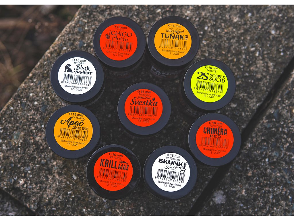 - Famózní švestka - Výrazně aromatické boilies na které ryby reagují takřka okamžitě. Perfektně funguje i při lovu amurů. Skvělých výsledků dosahuje také v chladné vodě do 10 stupňů, nicméně použití je celoroční. Roční období: J, L, P, Z. Typ vody: R, Š, Ř