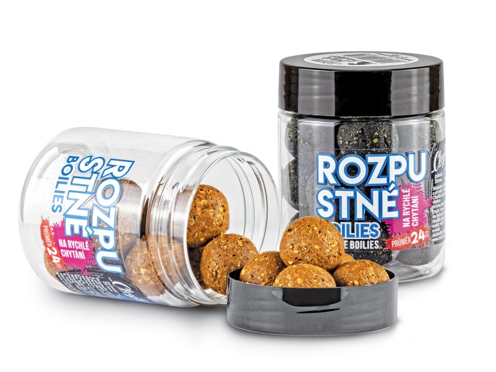 Rozpustné boilie oceníte v mnoha situacích. Většinou v těch těžších, kdy je potřeba rybu zaujmout něčím atraktivním. S oblibou se tato vysoce atraktivní nástraha používá při lovu v zimě, na závodech, při krátkodobém několikahodinovém lovu nebo v situacích, kdy ryby ignorují veškeré nástrahy. Oproti klasickému boilie obsahují také vyšší procento esencí, takže je již není potřeba dipovat !