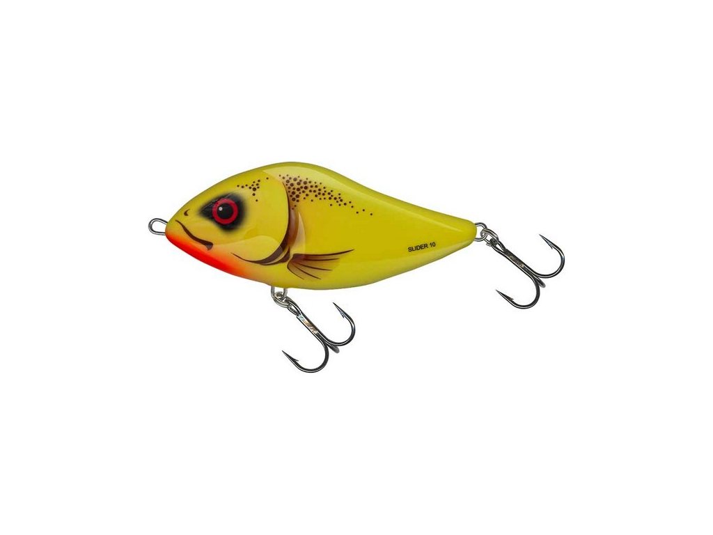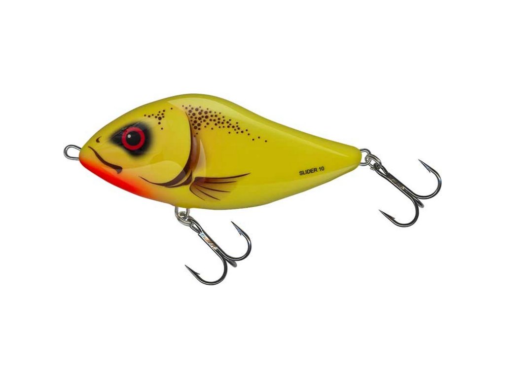 Tento typ Salmo představilo už v roce 2003, tolik času byly dostatečným k tomu, aby se z něho stala malá legenda. Křivka jeho prodejnosti se z roku na rok vyšplhala neuvěřitelným tempem na špičku prodejnosti a stovky rybářů se obrací s důvěrou na Slider. Jedinečný tvar a živý pohyb už obelstil velký počet rekordních ryb. K jeho úspěšnosti přispívá to, že je s ním lehká manipulace, úspěšný i při rozdílných rychlostech. Dostupný ve třech rozměrech v klesající i plovoucí verzi. Druhy ryb: štika, candát, sumec Speciální místa, situace: Doporučuje se hlavně k lovu ve stojatých vodách, i ve vodách hustě prorostlých rostlinami.Doplňkové parametry