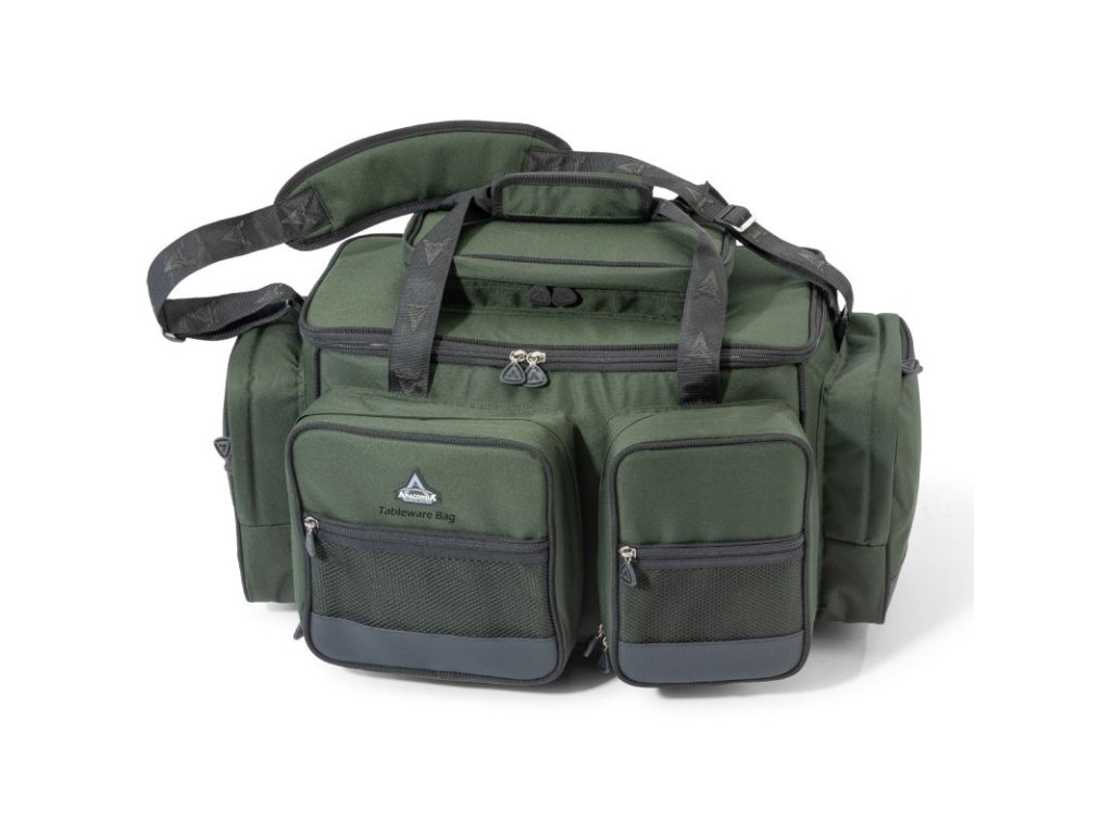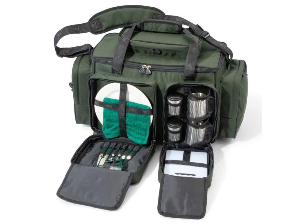 Prostorná jídelní taška nabízející dostatek prostoru pro potraviny. Vnitřek tašky obsahuje speciální tepelnou izolační výplň, která zajišťuje uchování potravin v čerstvém stavu po dlouhou dobu. Přepážky v tašce mají suchý zip, díky kterému lze komory libovolně měnit. Obsahuje 2 talíře a příbory, 2 x 2 ubrousky, 1 nůž s umělohmotnou deskou na řezání, 1 slánka, 1 pepřenka, 2 termošálky, 2 šálky, 2 kávové lžičky a 1 utěrka. Taška je vyrobena z voděodolného polyesteru 600D. Vnější rozměry jsou 65 x 36 x 35cm.