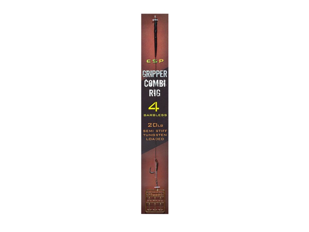 Hotové návazce ESP Gripper Combi Rig Profesionálně vázané návazce ESP Gripper Combi Rig, vyráběné v továrně ESP s důrazem na precizní kvalitu. Tyto návazce jsou navrženy pro maximální efektivitu a spolehlivost při lovu. Klíčové vlastnosti: Háčky Cryogen Gripper: Osazeny super silnými a ostrými háčky Cryogen Gripper pro spolehlivé zaseknutí. Návazcový materiál: Použita polotuhá potahovaná šňůrka ESP Tungsten Loaded Semi-Stiff, která zajišťuje optimální prezentaci nástrahy. Kombi styl: Klasický kombi návazec pro vysoce účinnou prezentaci nástrahy. ESP Line Aligner: Převlek Line Aligner pro optimální natočení háčku a efektivnější zaseknutí. ESP Streamliner Boom: Zabraňuje zamotání návazce při náhozu. Rychlá výměna: Horní konec návazce je zakončen smyčkou pro snadné připojení k obratlíku Quick Change. Dostupné varianty: Barva: Zelená a hnědá Velikost háčku: 4, 6 a 8 Provedení: S protihrotem nebo bez protihrotu Specifikace: Obsah balení: 1 návazec Délka návazce: 23 cm Součástí balení: ZarážkyDoplňkové parametry