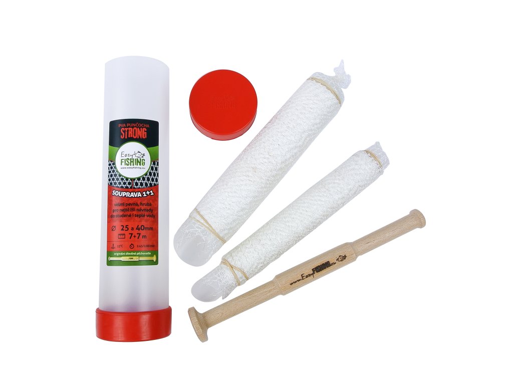 FINE ELASTIC jsou elastické, lehké a jemné PVA punčochy, speciálně vyráběné pro lehčí až středně těžké návnady a průměrně dlouhý nához. Síťka je vyrobená z kvalitního japonského materiálu. Souprava obsahuje 7 m punčochy ELASTIC FINE o průměru 25 mm a 7 m pučochy ELASTIC FINE o průměru 40 mm. Naše standardní balení je v tubusu, které je na koncích uzavřeno způsobem, který jiní nemají. Používáme totiž gumové uzávěry, které mají několik velkých výhod oproti jiným „renomovaným“ výrobcům. Hlavní výhodou našeho kompletu je_ – trvanlivost gumového uzávěru i při dlouhodobém používání mnoho let, – dokonalá těsnost a odolnost proti vodě, vlhkosti, dešti, rose. Když vám naše balení v tubusu spadne do vody, určitě zůstane cenná punčocha neporušená díky 100% těsnosti. – pružnost a tím i snadnost otevření i uzavření tubusu, bez námahy a bez použití jiných nástrojů k otevření, ulomených nehtů, říznutých prstů atd. – vnitřní tubus je v horní části upravený seříznutím pro snadnější nabírání náplně, např. z krabičky nebo jiné nádoby s návnadou. Nemusíte používat další přípravek jako třeba trychtýř nebo jinou násypku. S naším tubusem zvládnete naplnění punčochy jednou rukou!!! – na vnitřním tubusu je navléknutá vlastní punčocha, zajištěná gumičkou proti posunu a vše je zataveno v ochranné folii. – standardní součástí celého kompletu je ORIGINÁLNÍ DŘEVĚNÉ PĚCHOVADLO. – uvnitř balení najdete malý prospekt s návodem na použití. Snažíme se dělat naše výrobky vždy s větší přidanou hodnotou než ostatní, naším cílem je hlavně spokojený uživatel, který si výrobky EASYFISHING oblíbí pro jejich spolehlivost a pohodlí používání a bude se k nim vracet. – všechna naše provedení punčoch jsou barevně odlišena. Usnadňujeme vám orientaci v nabídce, můžete si lépe vybírat punčochy pro vaše specifické použití pro různé podmínky lovu podle teploty vody, váhy návnady, velikosti jednotlivých kousků (pelety,boilies….).Doplňkové parametry