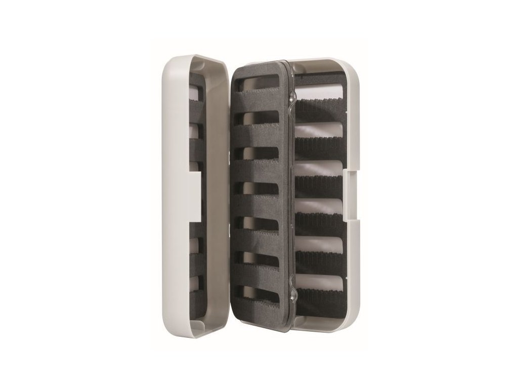 Muškařská krabička vetší velikosti je volně manipulovatelná. Uprostřed se nachází pevný pěnový list.