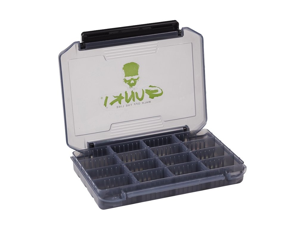 Krabička s oboustranným otevíráním pro uložení nástrah a drobností. Obsahuje celkem 16 přihrádek s 12 posuvnými oddělovači. Vnitřní uspořádání krabičky lze libovolně měnit. Rozměr 20,5x15,5x3,5 cm.