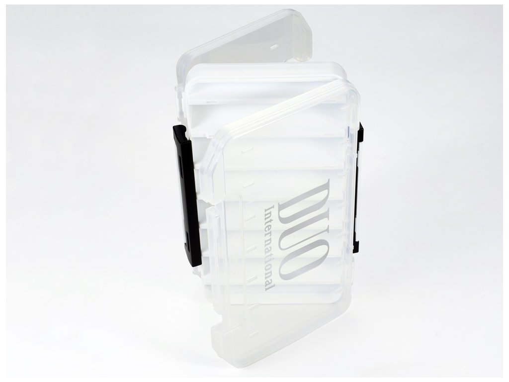 Oboustranná krabička DUO Reverse Lure Case je určená především pro bezpečné a praktické uložení a přepravu woblerů. Velkou výhodou je velké množství oddělených přihrádek. Z tohoto důvodu je vhodné woblery do přihrádek ukládat jednotlivě, aby se zabránilo jakémukoliv poškození nebo zamotání woblerů volnými trojháčky. U tenčích nebo úzkých modelů lze uložit i dva kusy do jedné přihrádky. Doporučujeme však ukládat woblery jednotlivě, pro maximální péči a snadnou manipulaci bez zamotaných trojháčků.