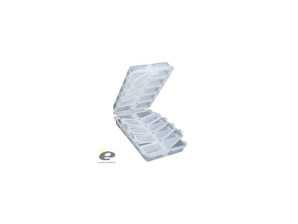 Krabička na háčky se zvlášť uzavíratelnými přihrádkama, ve kterých můžeme bezpečně uložit menší i větší háčky. Díky průhlednému a umělohmotnému materiálu je obsah krabičky dobře viditelný. Prostorově nenáročné ukládací místo, které můžeme mušlovitě zavírat a proto pro tuto krabičku najdeme snadno vhodnou tašku.Doplňkové parametry