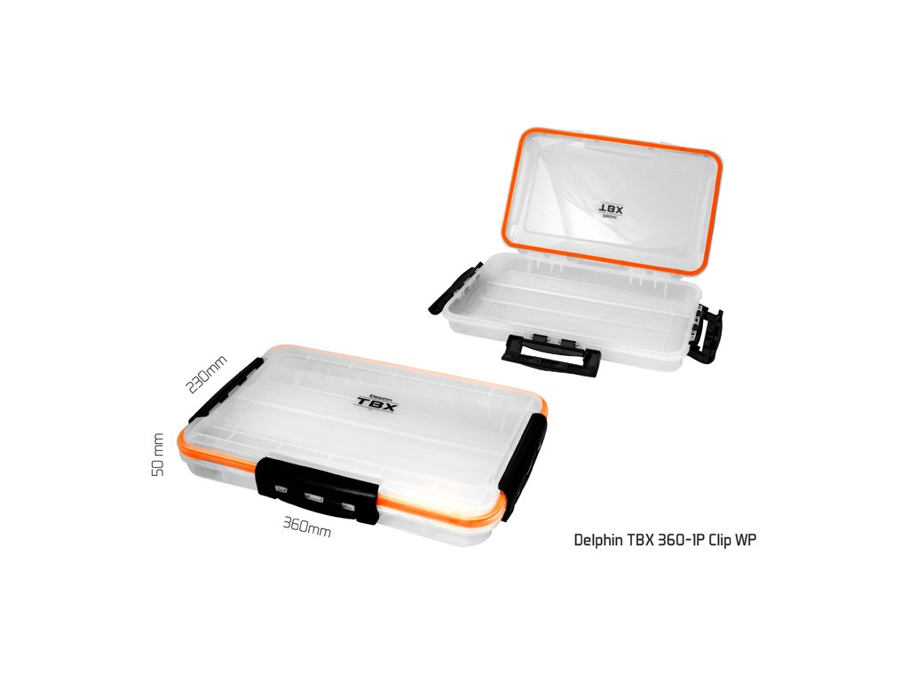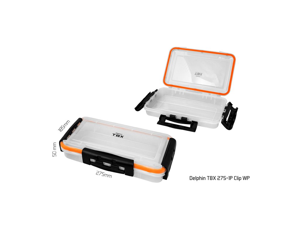 TXB ONE Clip je řada multifunkčních krabiček určených pro uložení rybářského příslušenství. Vyrobena je z transparentního plastu, takže máte vždy přehled o uložených věcech uvnitř krabičky. Vybavená je praktickými externími klipy z plastu. Technické parametre: Model: Delphin TBX One 275-1P Clip WP Rozměr: 275x185x50mm Počet pevných přihrádek: 1 Rozměr přihrádky: 24,5x14,5x3,3cm Počet vkladatelných příčníků: 0 Model: Delphin TBX One 360-1P Clip WP Rozměr: 360x230x50mm Počet pevných přihrádek: 1 Rozměr přihrádky: 32,5x19,5x3cm Počet vkladatelných příčníků: 0Doplňkové parametry