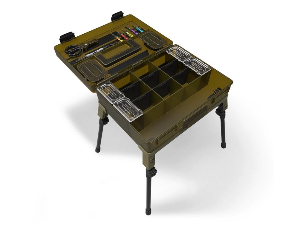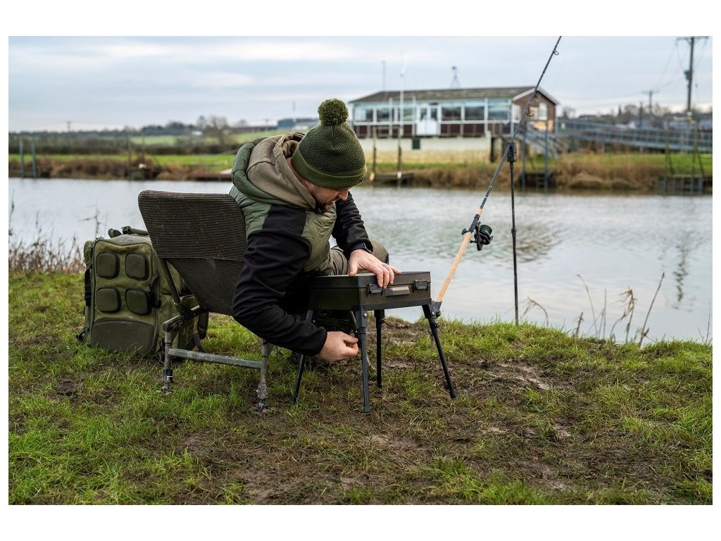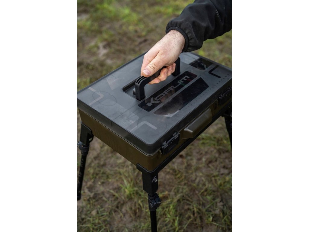 Součástí jsou teleskopické nohy, které umožňují mít box v dosažitelné vzdálenosti při rybolovu ze židle, nebo ho držet dokonale organizovaný při rybolovu ze shelteru. Box má odolnou rukojeť pro přenášení, boční úchyt, pevné zajišťovací spony a těsnění, a součástí je i metr pro měření délky při vázání návazců.