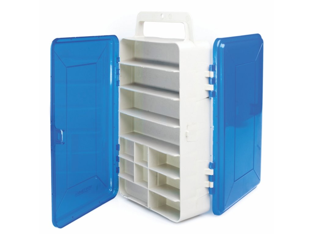 Oboustranná krabička na uložení háčků, olůvek a jiné rybářské bižuterie.