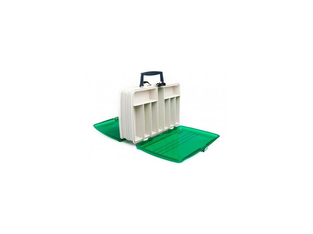 Praktická oboustranná krabička na rybářskou bižuterii. Skvěle se hodí na uložení háčků, krmítek, obratlíků a dalších nezbytných věcí. Je vyrobena z pevného plastu, který vyrdží i tvrdé podmínky při přenášení a u vody.