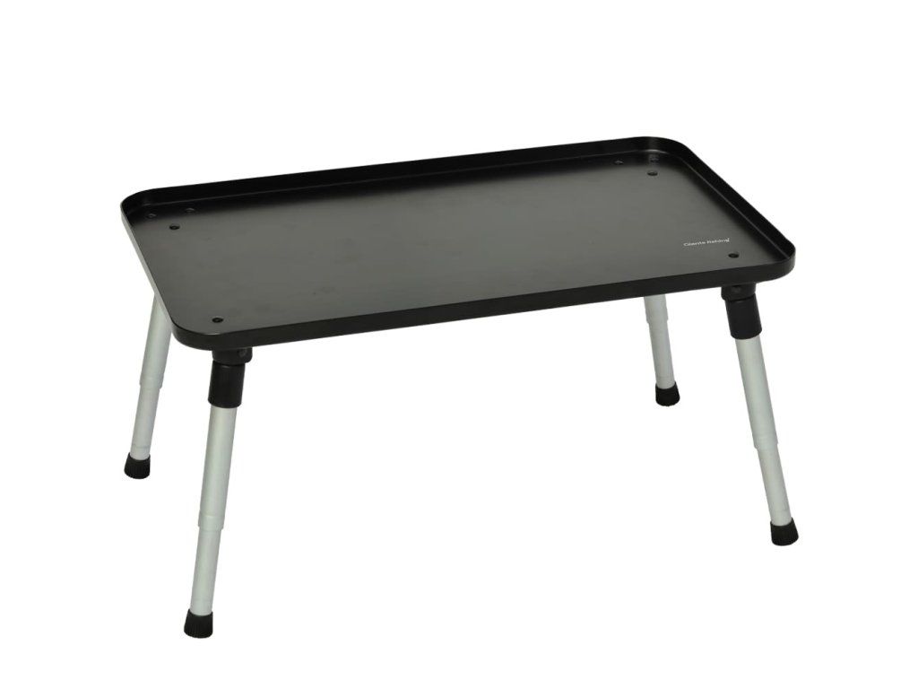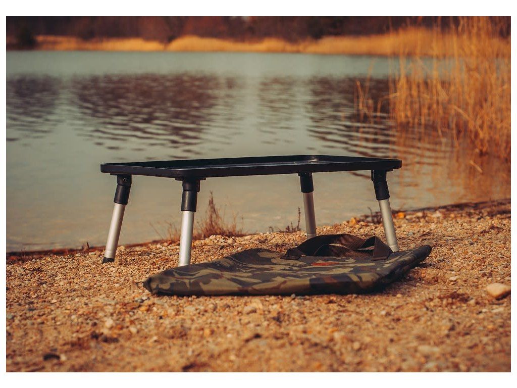 Na křesílko bylo použito polstrování, které je vyrobeno z příjemného polar fleece. Konstrukce z lehké, ale přitom pevné ocelové slitiny. Specifikace: - Rychle rozložitelná konstrukce - Jedinečný design matrace s polar fleecem - Použitá tkanina tmavě zelený polyester 500D/ polar fleece - Ocelová konstrukce o průměru 22 mm - Čtyři výškově nastavitelné nohy - Velké pacičky proti zaboření do bláta - Rozměry: 38 x 53 x 32/75 cm - Váha: 4,7 kg Stolek do přístřešku hliníkové konstrukce černé barvy, který je dodáván včetně nepromokavého obalu v atraktivním maskáčovém designu. Vhodný pro odkládání často používaných věcí při rybaření. Stolek je vyroben z hliníkové slitiny a lze jej díky lehce ovladatelnému upínáku snadno přidělat k lehátku či sedačce. Dále je v něm otvor se síťkou pro držení láhve. Rozměry: 15x25cm Odkaz na video: http://www.youtube.com/watch?v=yPiXslfnDDcDoplňkové parametry