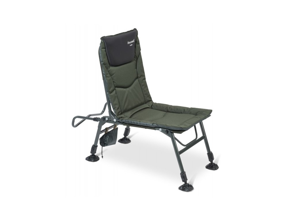 Jedná se o multifunkční rybářské křeslo. Může sloužit jako klasické křesílko a díky speciálním vysouvacím úchytům lze křeslo umístit kolmo na lehátko, což oceníme zejména v bivaku, či na místech, kde je málo prostoru. Ochranou proti umazání lehátka, jsou návleky.- zatahovací nohy pro umístění křesla na lehátku