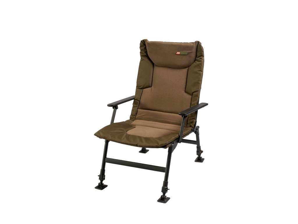 Toto křeslo je ideální pro rybáře, kteří hledají pevné a pohodlné křeslo s područkami. Sedák a opěradlo jsou vyrobeny z pohodlného polstrovaného polar fleecu a polyesteru, nohy jsou plně nastavitelné a mají patky proti zaboření.
