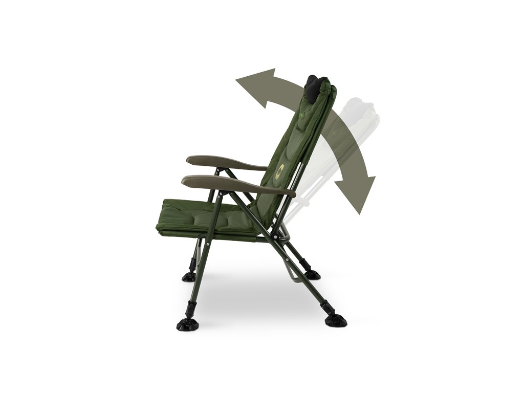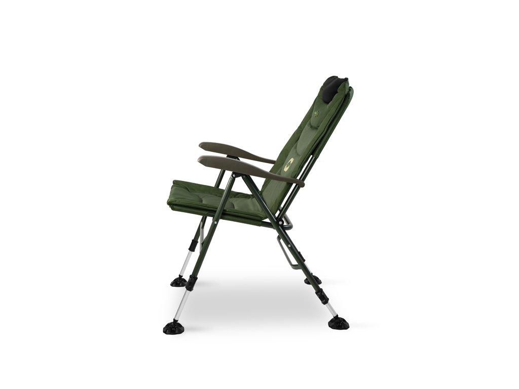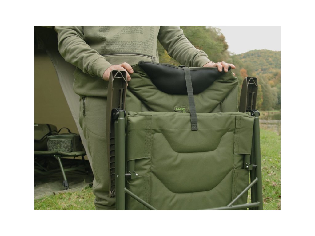 Dlouhé hodiny strávené na rybách vyžadují trpělivost, pevné nervy, ale hlavně dokonalé pohodlí a maximální komfort. Právě o ten se bez problémů postará křeslo Delphin ErgoCARP, které se stane nezbytnou součástí vaší výbavy. Ergonomické vlastnosti křesla jsou umocněny opěrkou hlavy vyrobenou z paměťové pěny, za kterou vám tělo nejen poděkuje, ale díky ní si také dokonale odpočine. Základem křesla je oblíbená konstrukce ve tvaru písmene A, která umožňuje velice rychlé a snadné skládání či rozkládání přímo na místě lovu. Konstrukce je tvořena robustními trubkami s vysokou pevností a nosností, ale přitom si stále zachovává nízkou hmotnost. Samotná matrace byla navržena a prošívána tak, aby se tělo a zejména záda během sezení cítila co nejpřirozeněji a nejpohodlněji. Dlouhodobou životnost zaručuje kvalitní 600D látka, kterou je vybavena právě zádová i sedací část. O maximální pohodlí hlavy a krční páteře se stará opěrka hlavy s paměťovou pěnou. V oblasti loketních opěrek je křeslo vybaveno nastavitelným mechanismem, který umožňuje až 5 úrovní sklonu opěradla, takže si můžete jednoduše zvolit úhel opěradla podle aktuálních potřeb. Výškově nastavitelné nohy umožňují přizpůsobit křeslo nerovnému terénu a zaručují stabilitu i v náročných podmínkách. O bezpečné zajištění polohy se starají flexibilní robustní patky, jejichž velká plocha účinně zabraňuje zapadnutí nohou do měkké půdy u vody. Navíc je křeslo vybaveno plastovým klipem, který fixuje jeho polohu během převozu a předchází nechtěnému rozevírání. Série ErgoCARP byla vyvinuta s cílem nabídnout co nejvyšší komfort za příznivou cenu. Vyznačuje se zejména použitím kvalitních materiálů a pohodlnou matrací, které jsou osazeny na pevné kovové konstrukci, která přispívá k dokonalé stabilitě. Společným znakem celé série je také zelená barva, doplněná naším originálním Outline logem kapra. Technické parametry Rozměry sedáku: 52x46cm Výška zádové opěrky: 67cm Výška sedáku: 40-54.5cm Hmotnost: 6.8kg Transportní rozměry: 69x95x10cm Nosnost: 150kg Nosnost křesla/lehátka je velmi komplexní otázka. Odpověď je ovlivněna mnoha faktory, jako například rovinatost a stabilita podkladu, na kterém křeslo/lehátko rozkládáme a také samotné fyzické parametry člověka, který do něj sedá. Statické/nehybné zatížení bývá vždy vyšší, než namáhání dynamické (při sedání uživatele, z jaké výšky a jak plynule si sedá). Zjednodušeně lze uvést, že v ideálním případě je nosnost křesla/lehátka ErgoCARP přibližně 150 kg.Doplňkové parametry