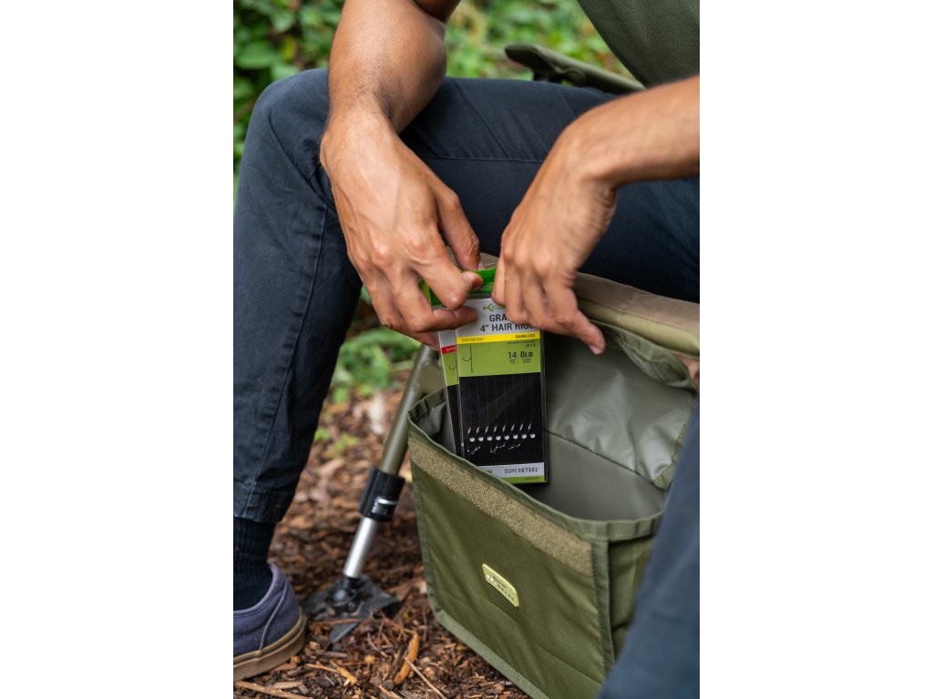 Skvělý způsob, jak při rybaření z křesla uchovat své cennosti v bezpečí. Ideální místo pro rychlé odložení telefonu, klíčů, peněženky a příposlechu. Vyrobeno z tkaniny 150D PU Flex s voděodolností 5 000 mm. Vyztuženo PE deskou pro větší pevnost. Jednoduché zapínání na suchý zip.