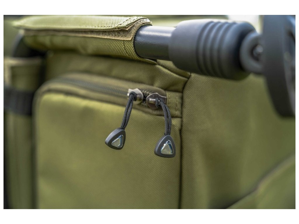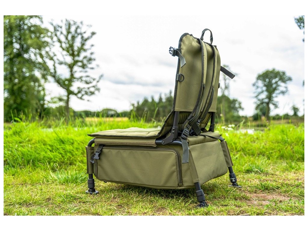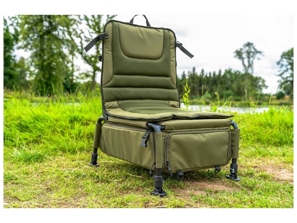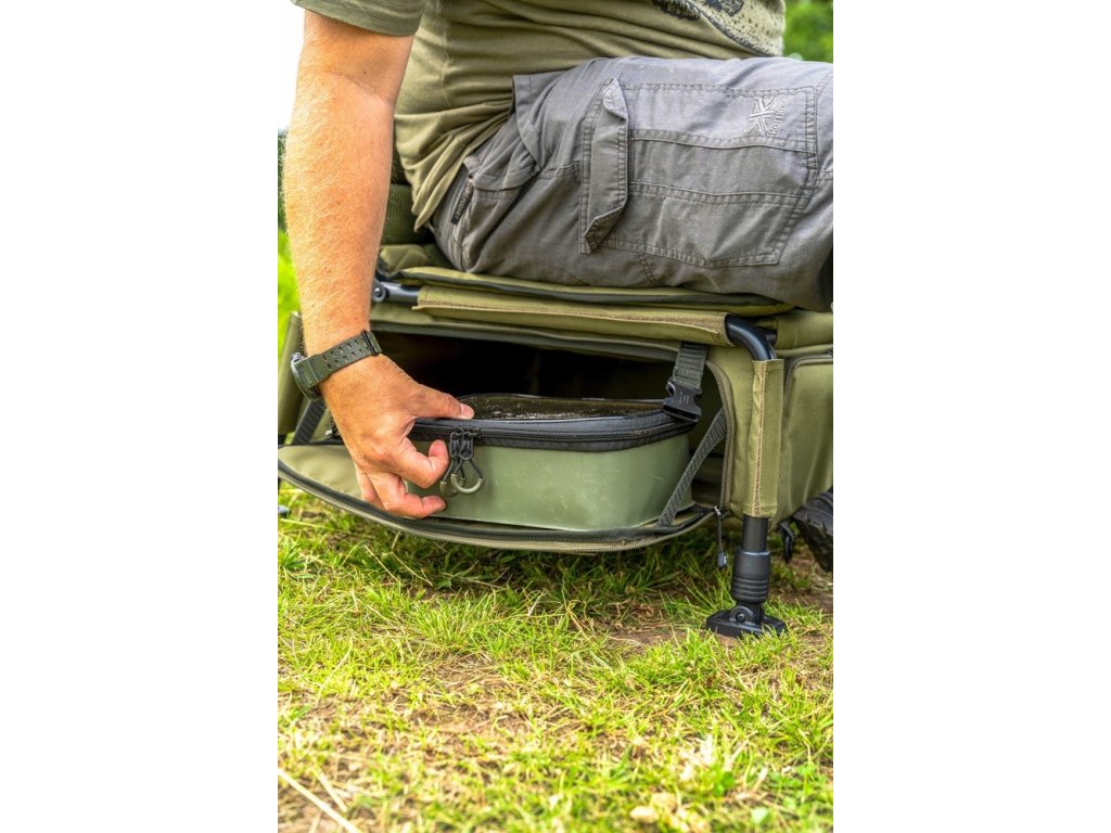 Přístup k rybářskému vybavení přímo pod sedadlem, stejně jako to dělají rybáři na bednách, bez problémů s velkou hmotností a přepravou. Taška je vybavena vstupními místy na třech stranách a zadní štěrbinovou kapsou na vidličky a příslušenství ke křeslu.