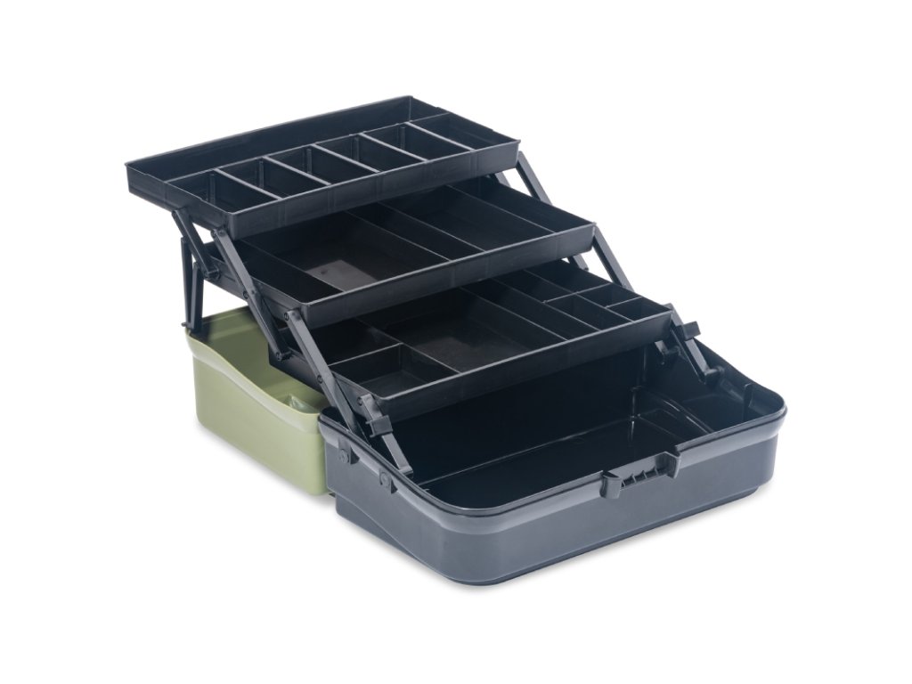 Velkokapacitní rybářský box, který uspokojí i ty nejnáročnější rybáře. Díky třem úrovním přihrádek a prostorné spodní části je ideální pro organizaci širokého spektra rybářských potřeb. Materiál ABS zajišťuje nerozbitnost a dlouhou životnost. Atraktivní zelené provedení je doplněno o odolné madlo, které usnadňuje přenášení.